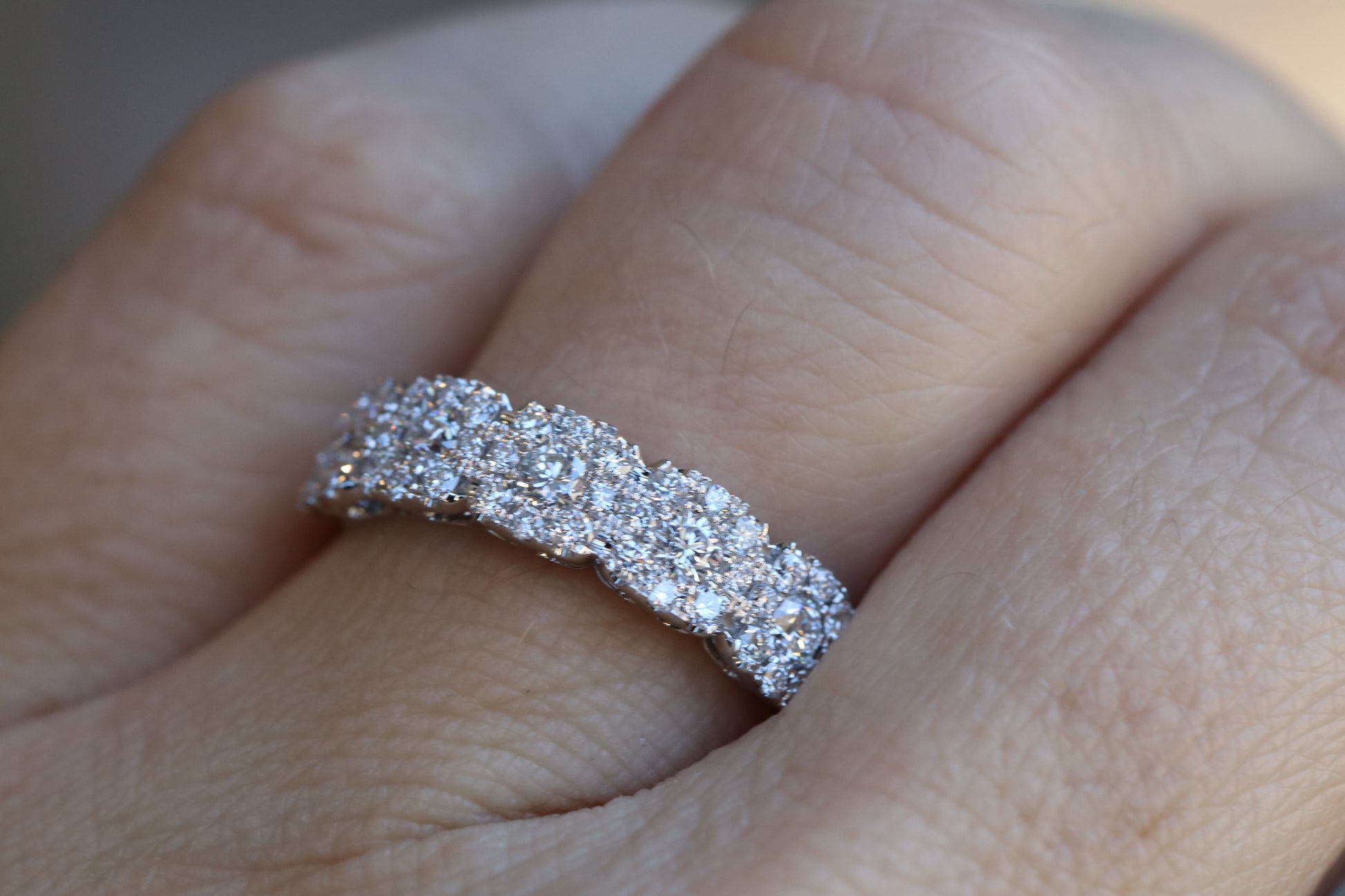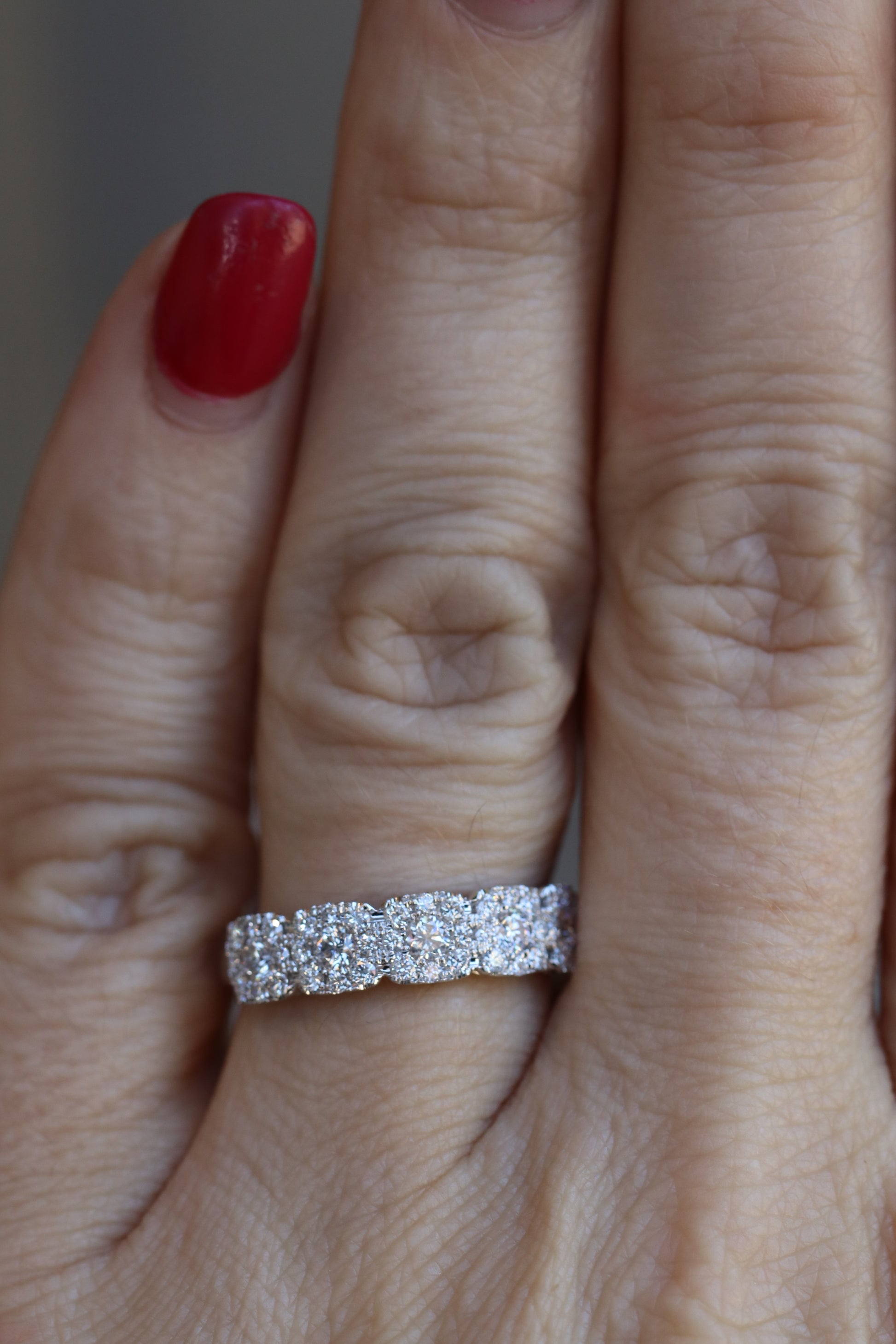 This band is SPECTACULAR. It has 5 round brilliant diamonds surrounded by 45 more round brilliant diamonds. This is the type of band that sparkles very much and shows off alone. It's so pretty we also so make it in 1.50 tcw. Check it out here.