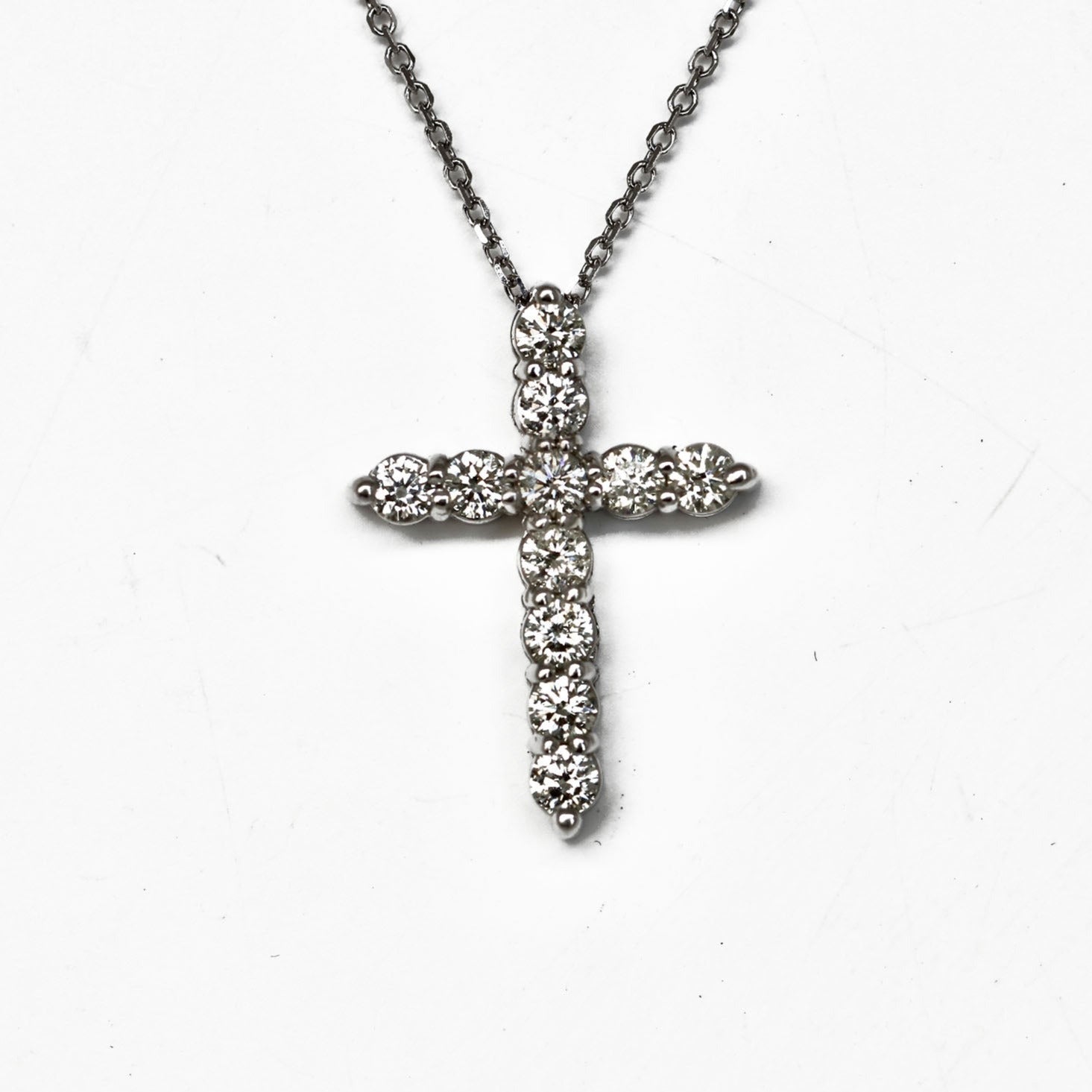 Large Diamond Cross .90tcw in 14kt Solid White Gold