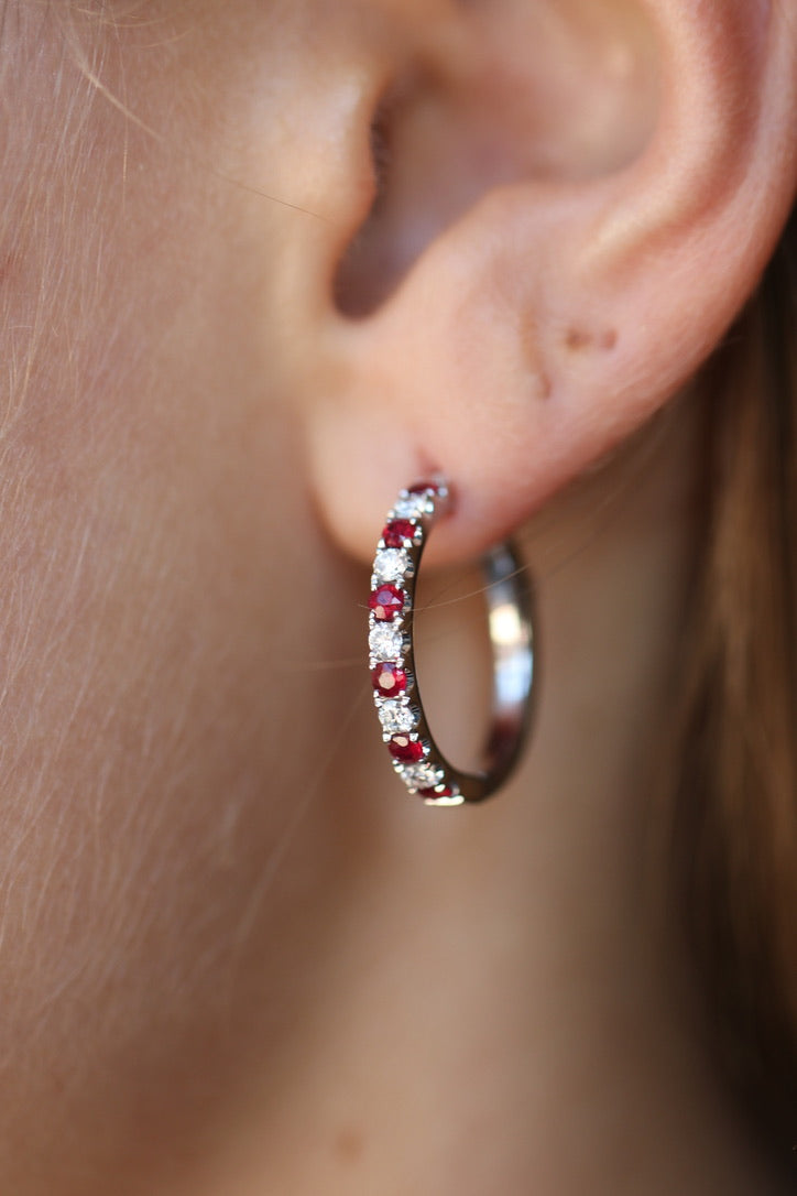 Diamond and Ruby Hoop Earrings