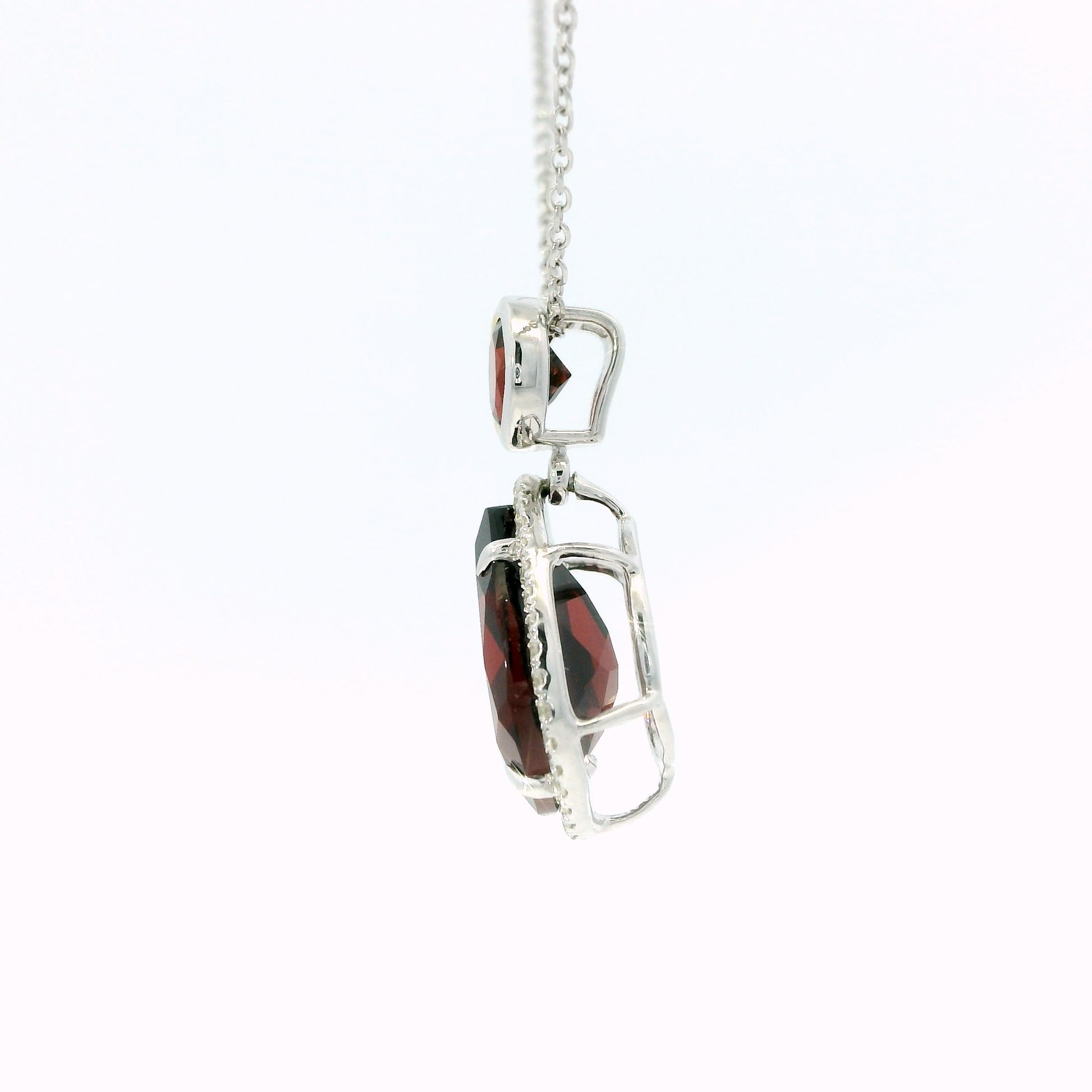 14K White Gold Double Garnet Drop Pendant with Diamond Halo