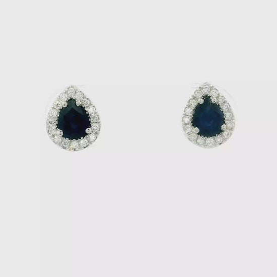 14K Gold Pear-Shaped Sapphire & Diamond Halo Stud Earrings