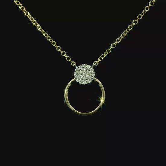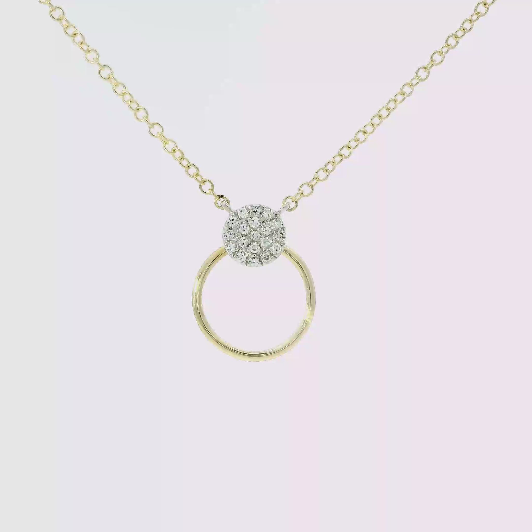 14K Yellow Gold Pave Diamond Disc & Open Circle Necklace