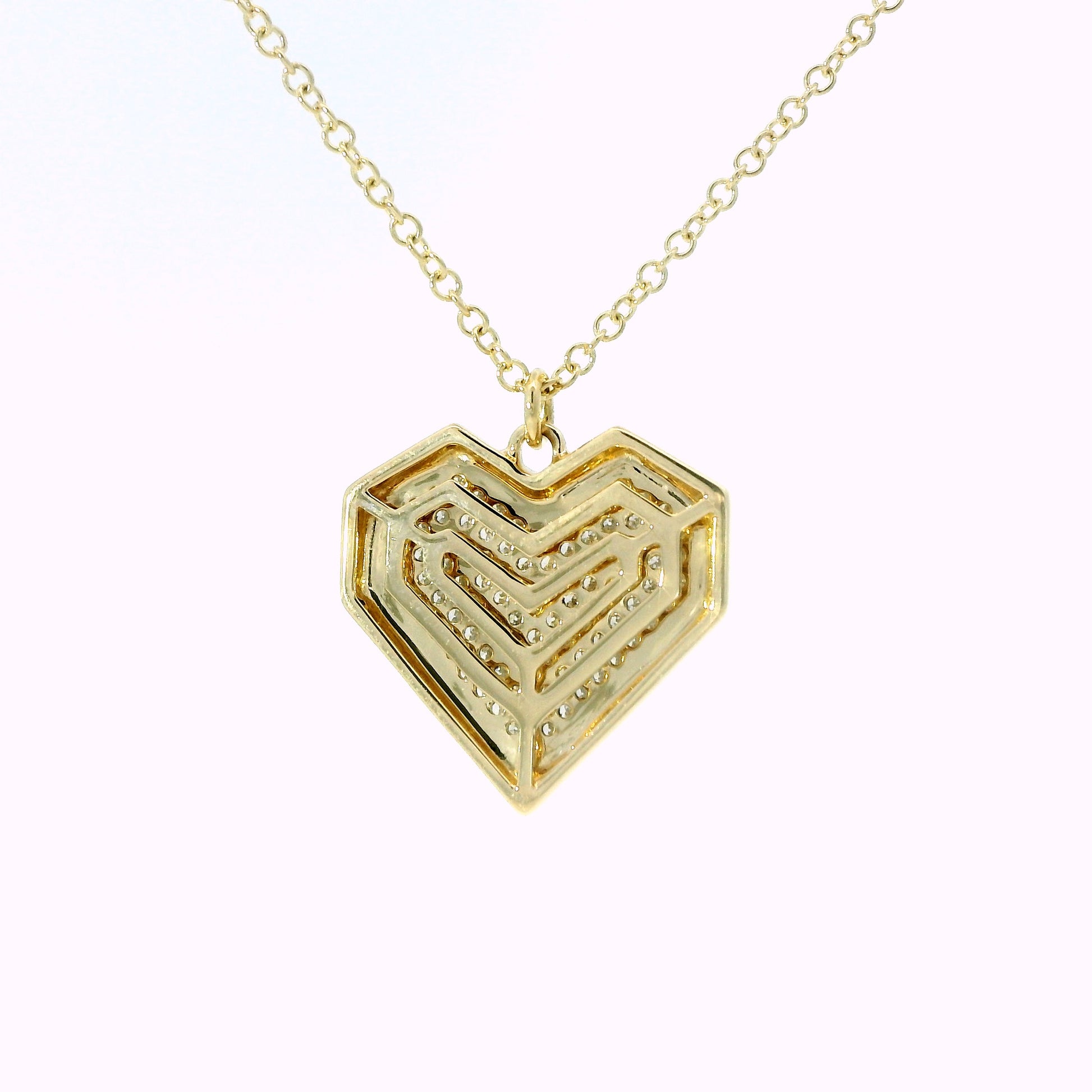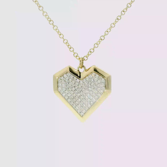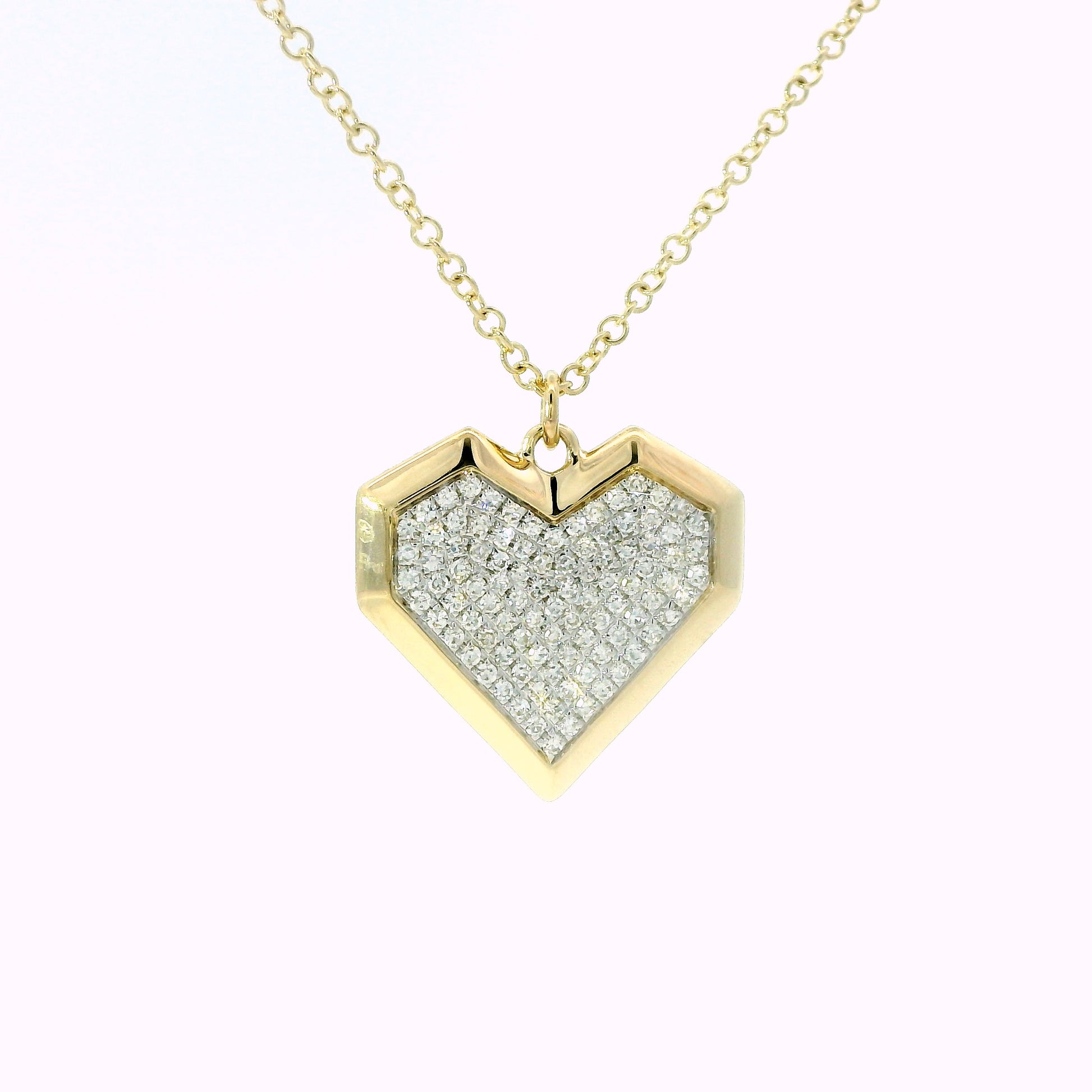 14K Yellow Gold Pavé Set Diamond Geometric Heart Pendant Necklace