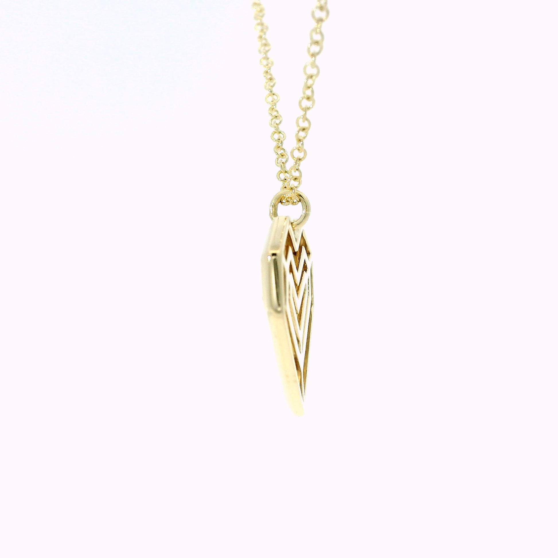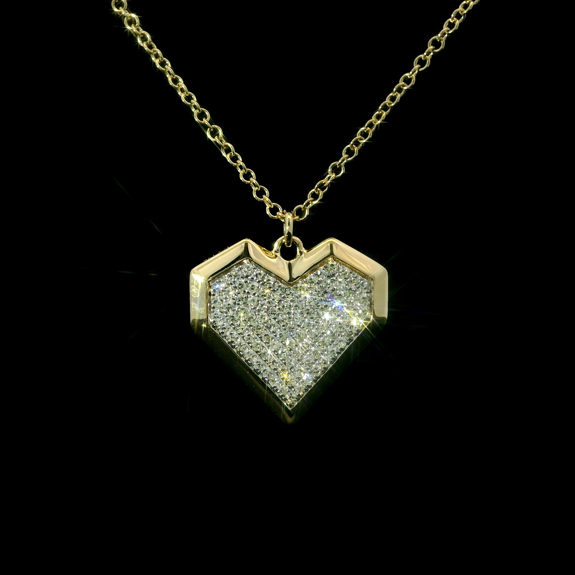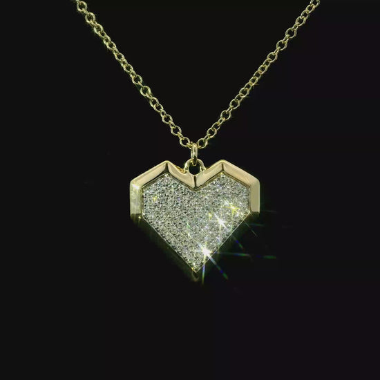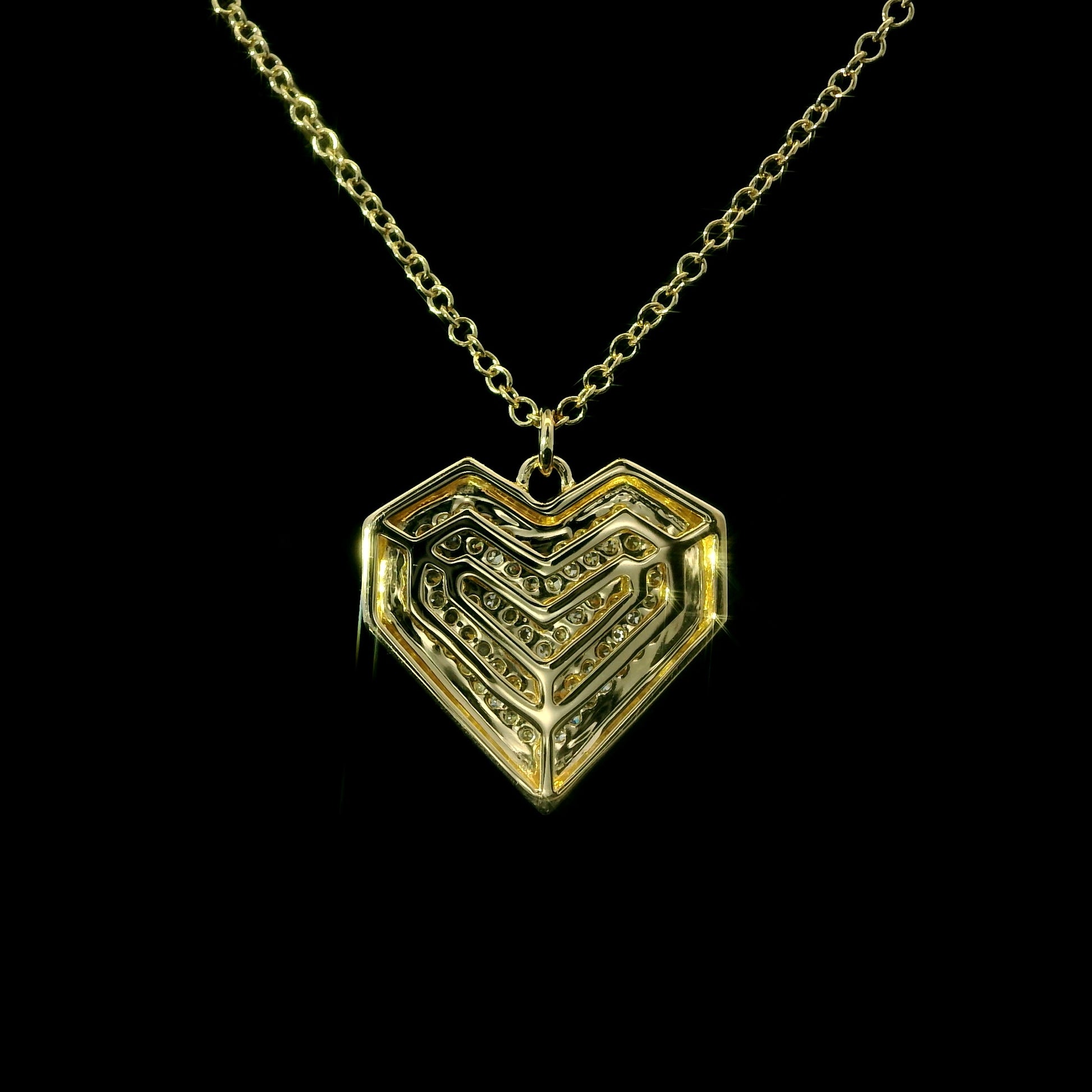 14K Yellow Gold Pavé Set Diamond Geometric Heart Pendant Necklace