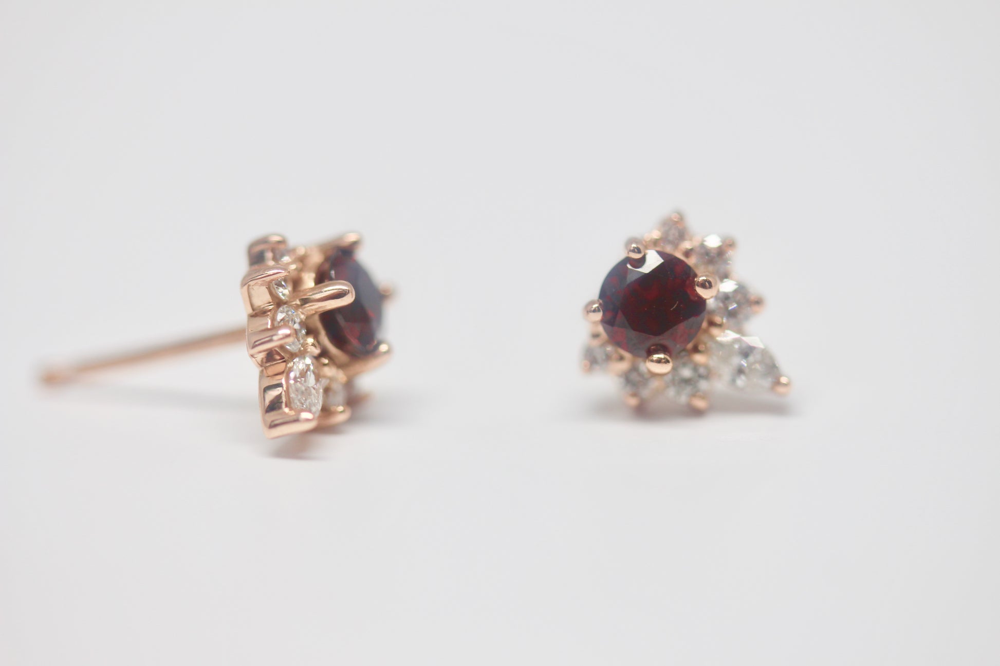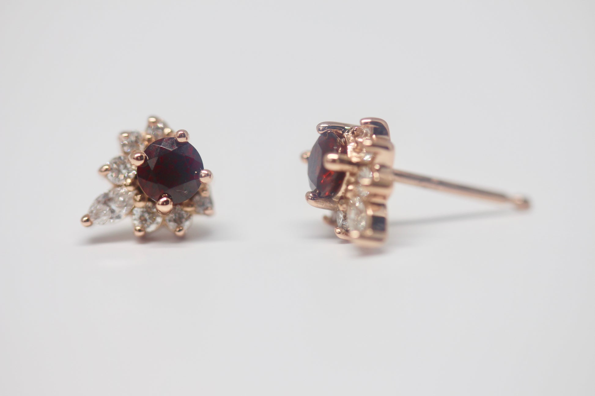 14kt Rose Gold Diamond and Round Cut Garnet Earrings