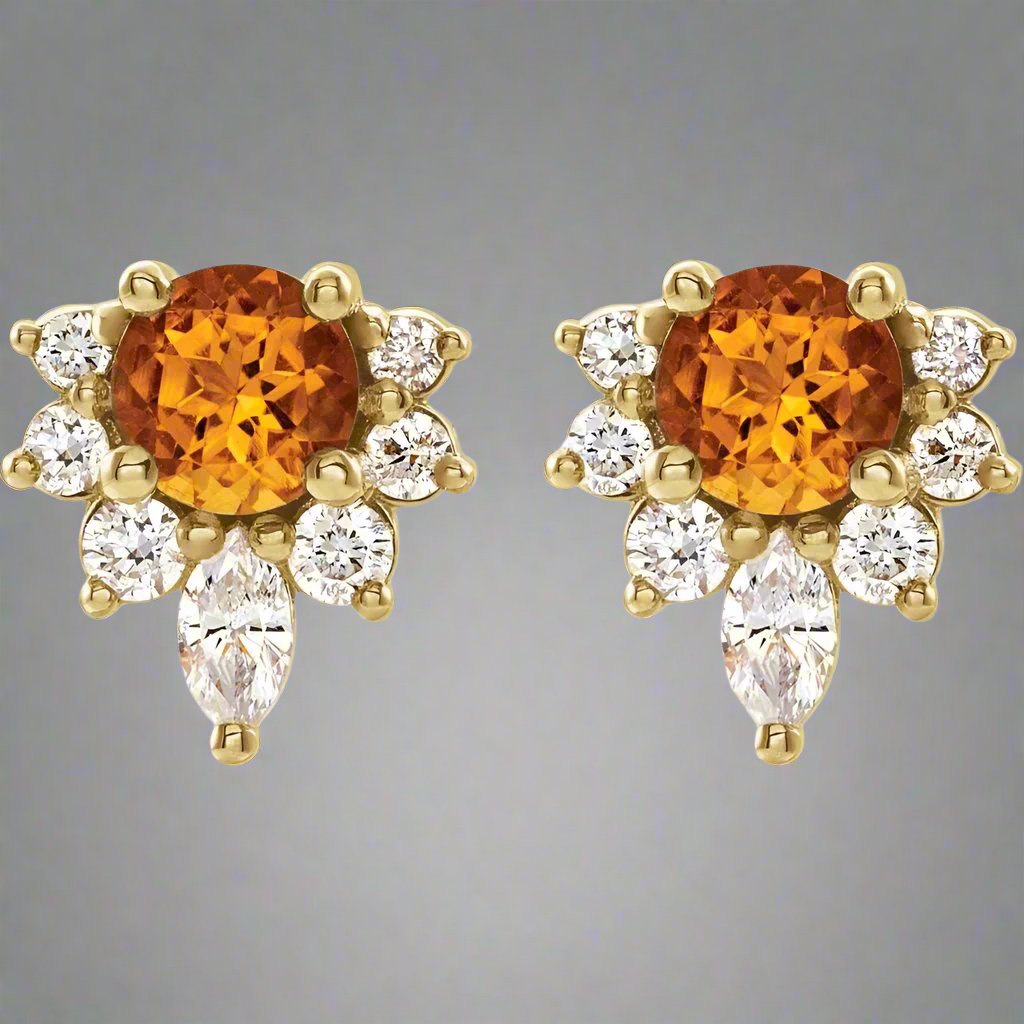 14kt Yellow Gold Diamond and Round Cut Citrine Earrings