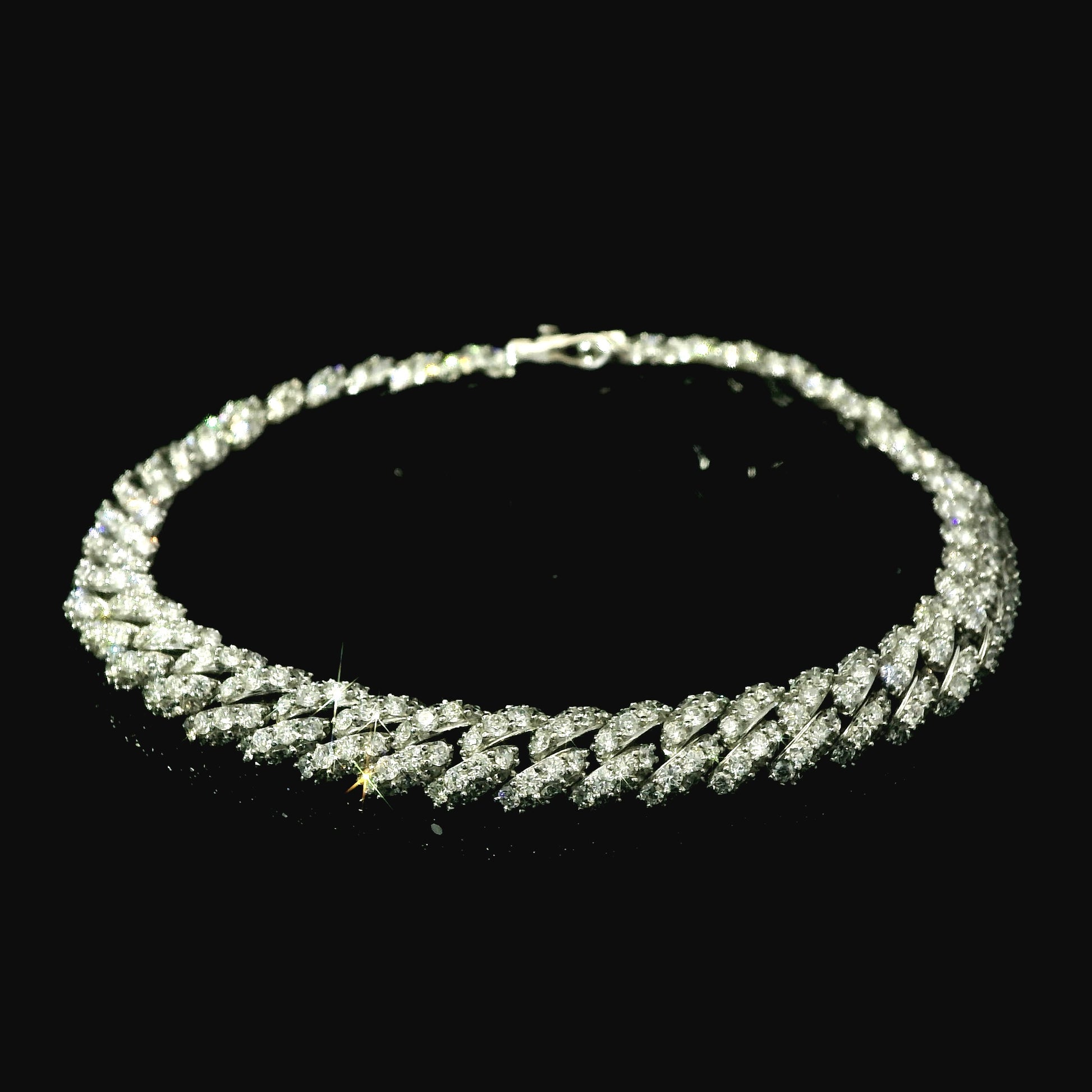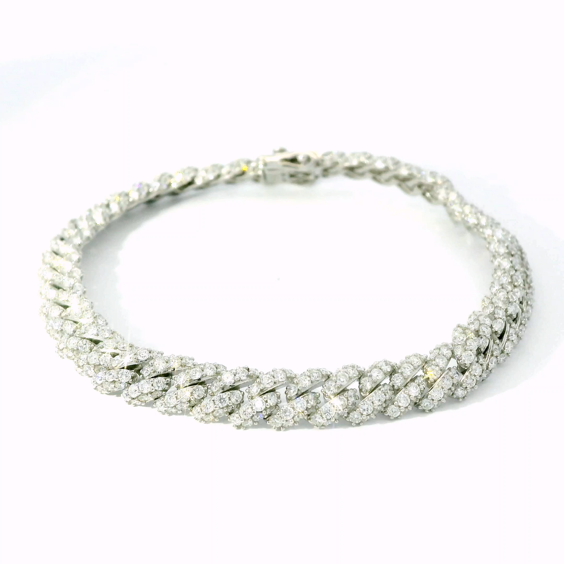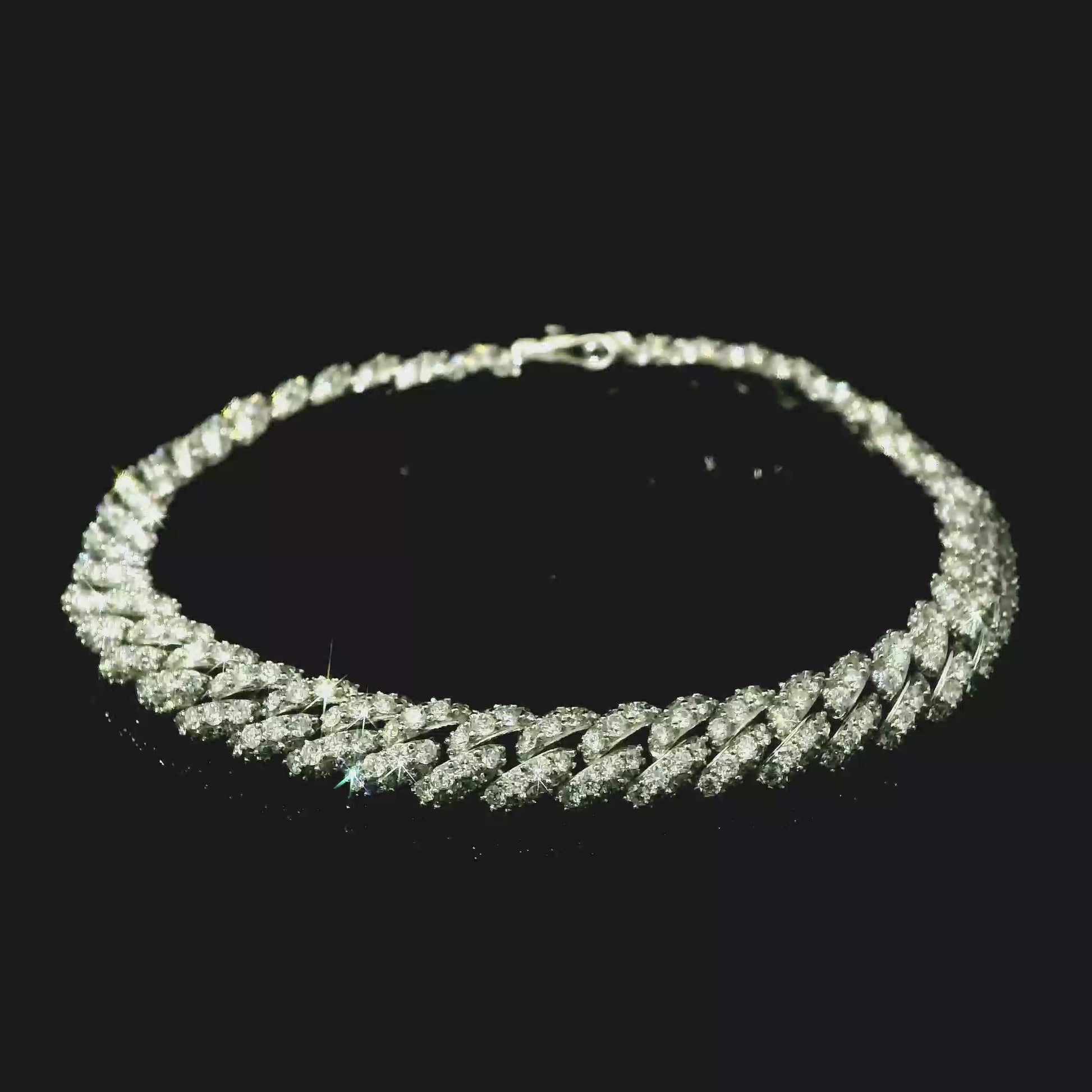18K White Gold Diamond Cuban Link Chain Bracelet