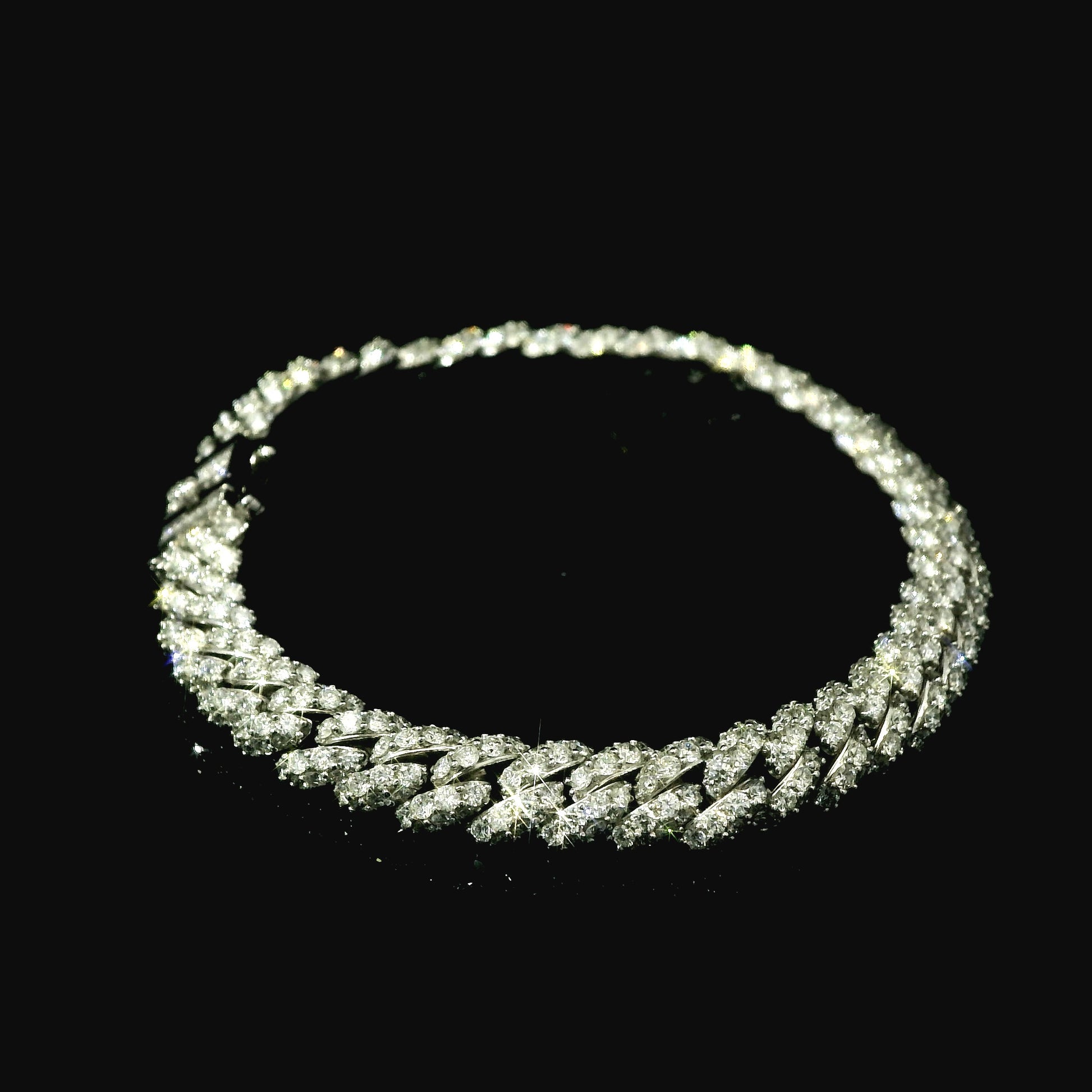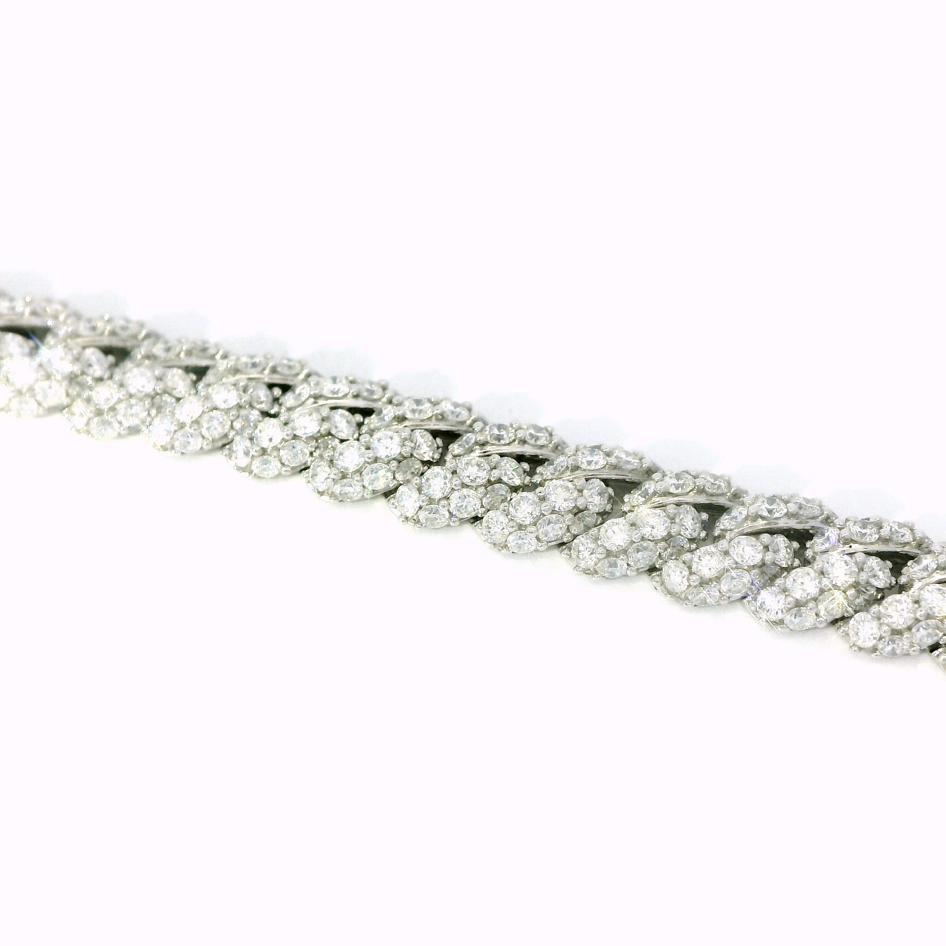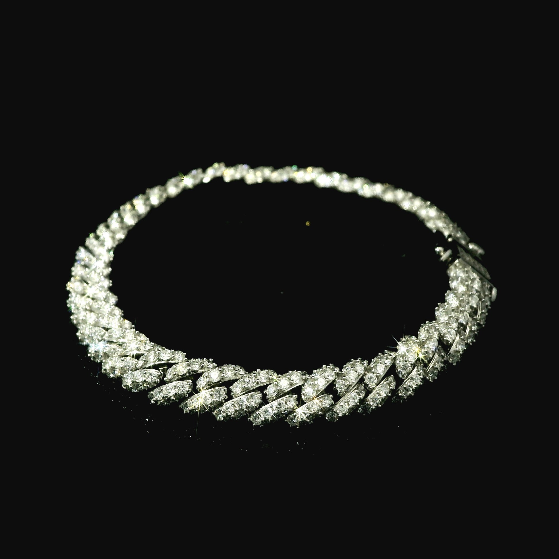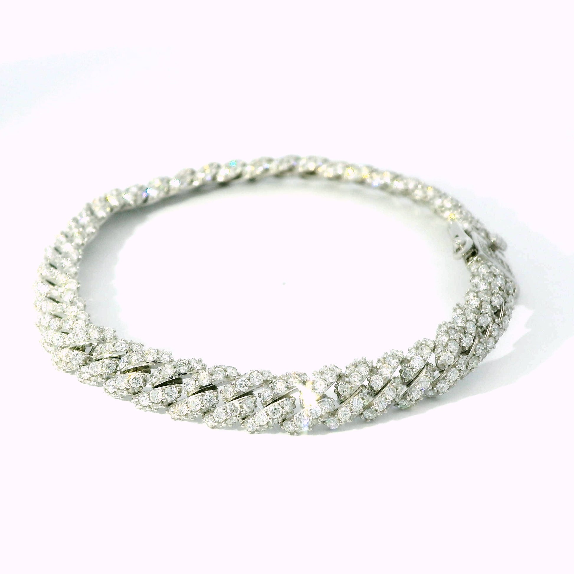 18K White Gold Diamond Cuban Link Chain Bracelet