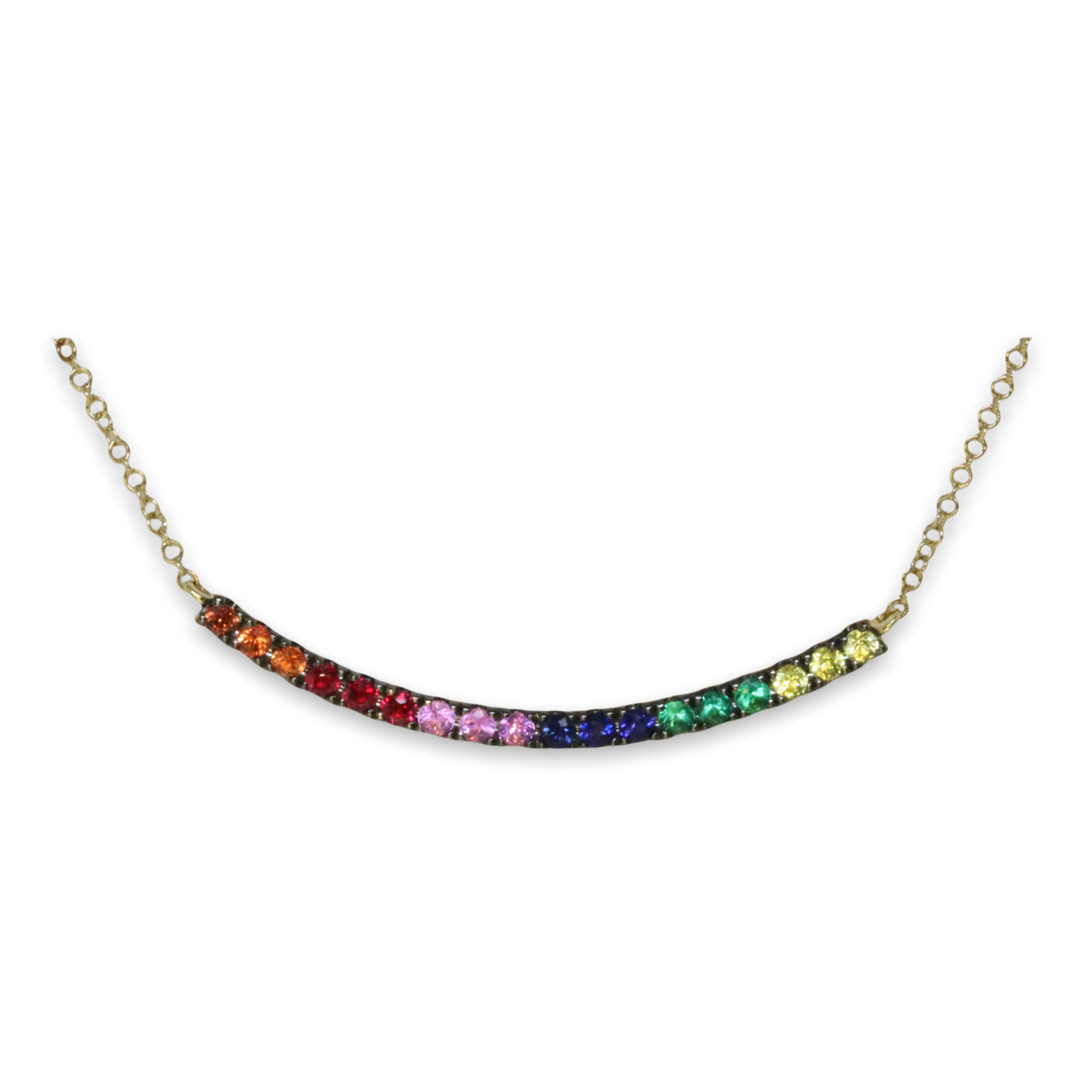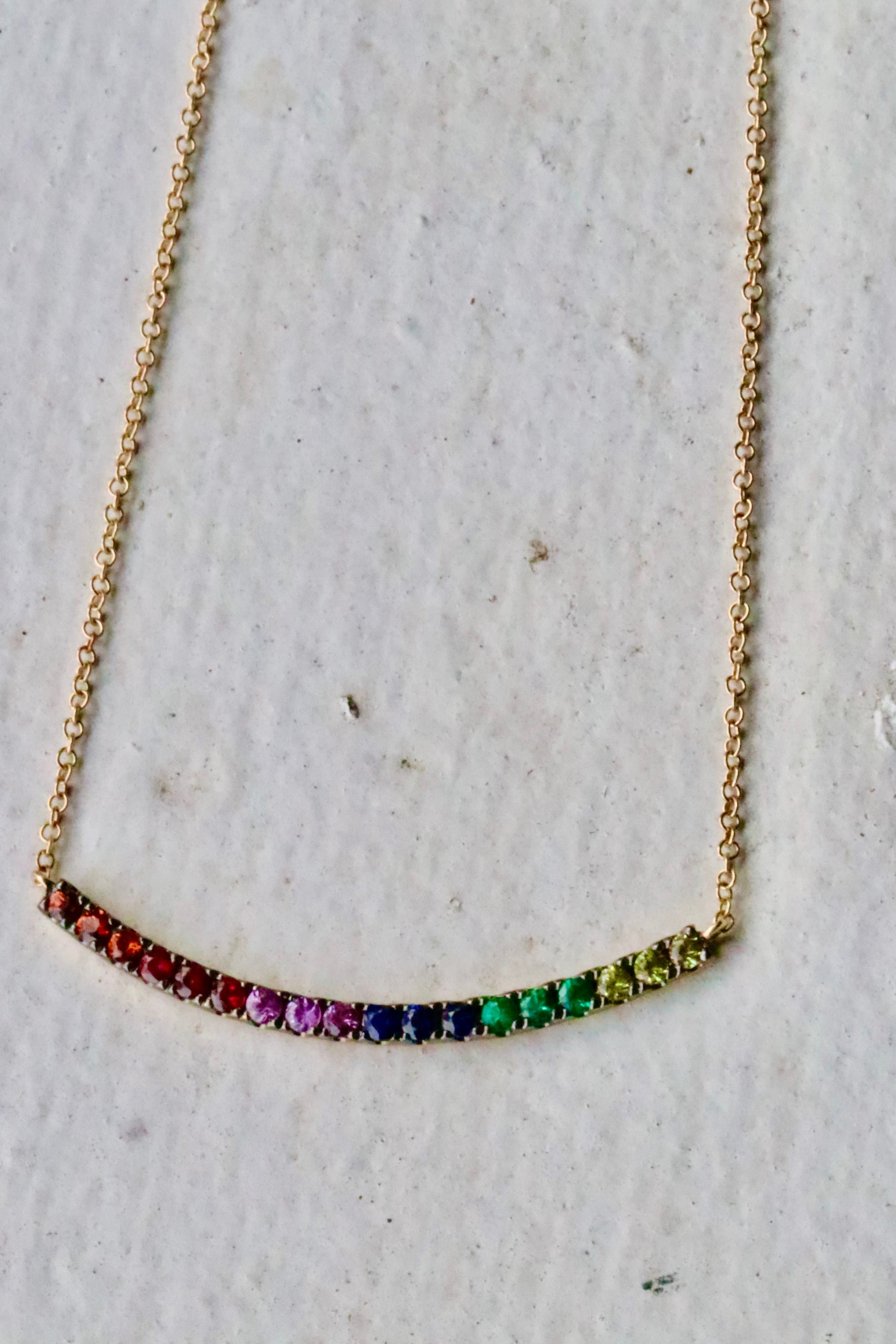 Multi Color Sapphire Rainbow Necklace in 14Kt Gold