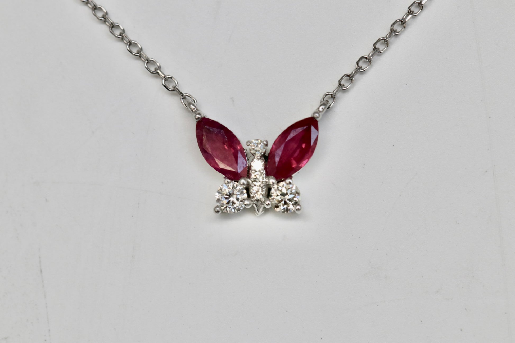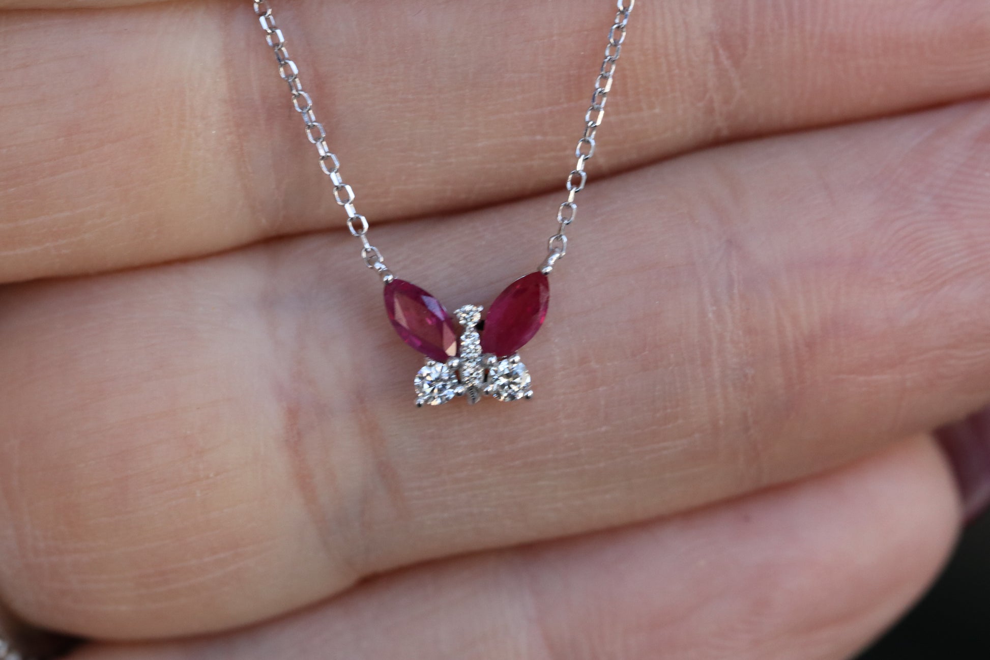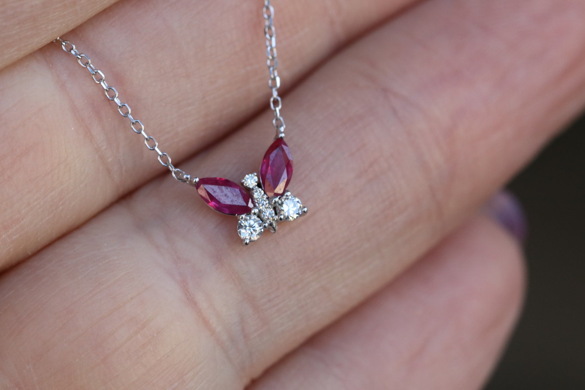 Ruby and Diamond Butterfly Necklace in Solid 14k Gold