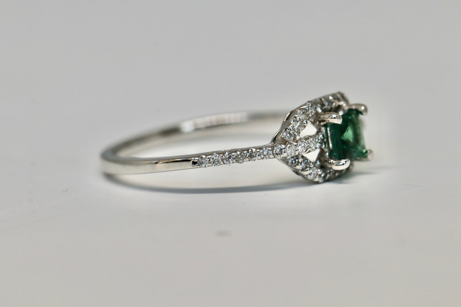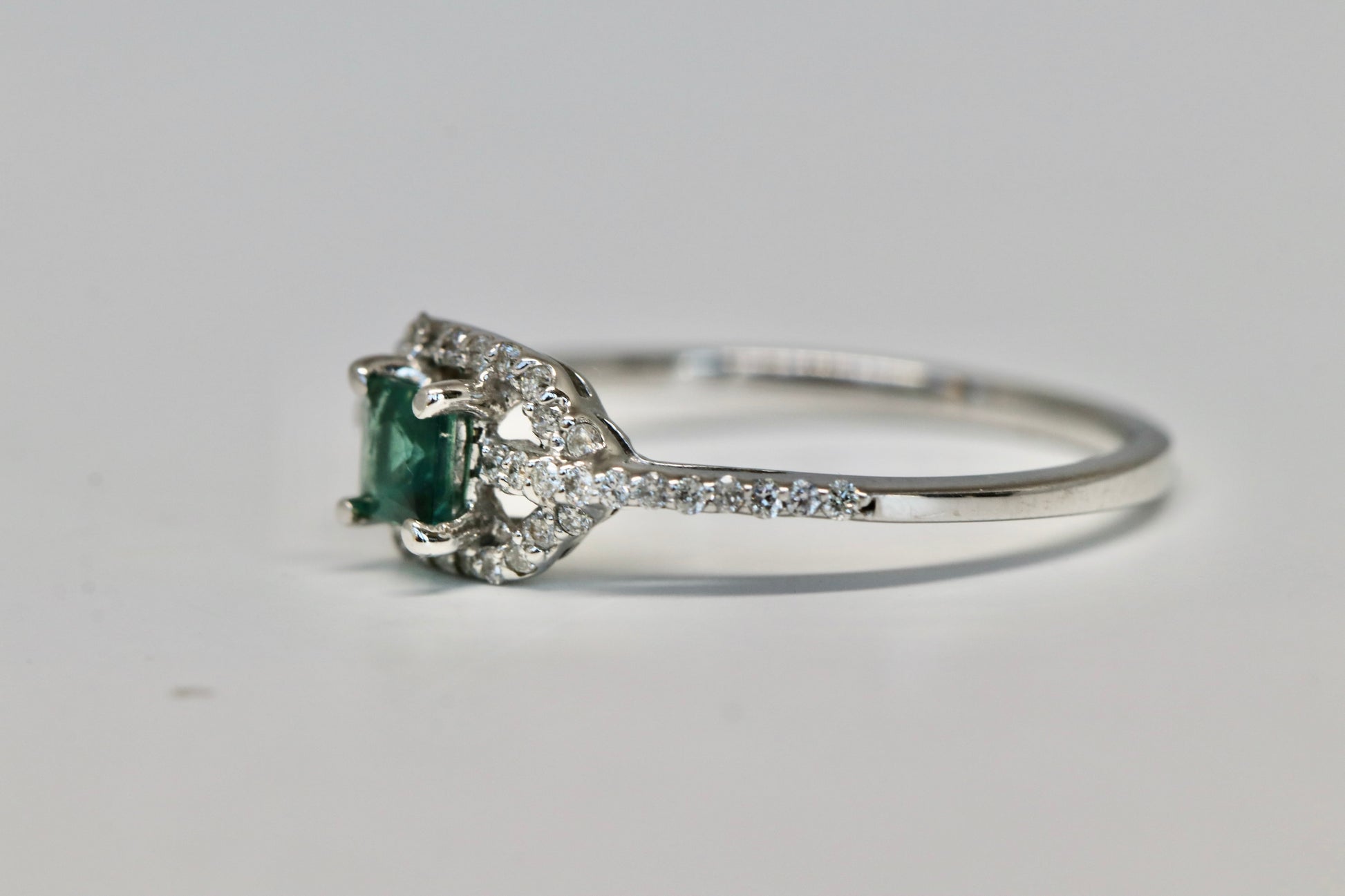 Alexandrite Halo Diamond Ring in Solid 14kt White Gold