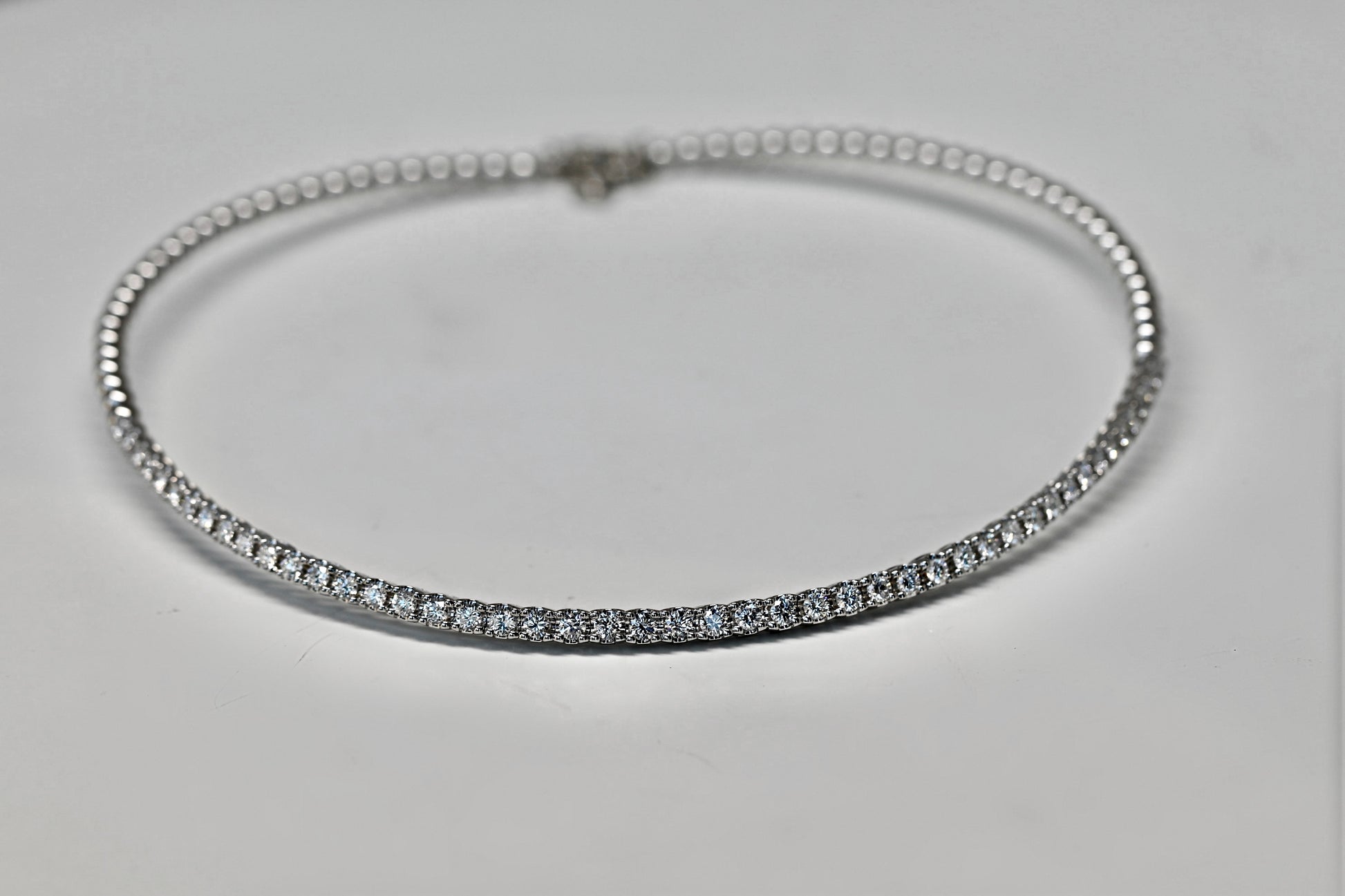 This diamond choker is SEXY! It can be worn all the time or for special occasions. It has a stong lobster claps and doesn't flip. Easy, comfotable, and sprkly to wear.