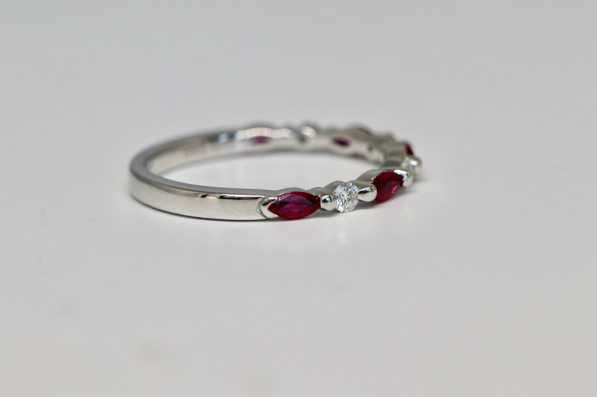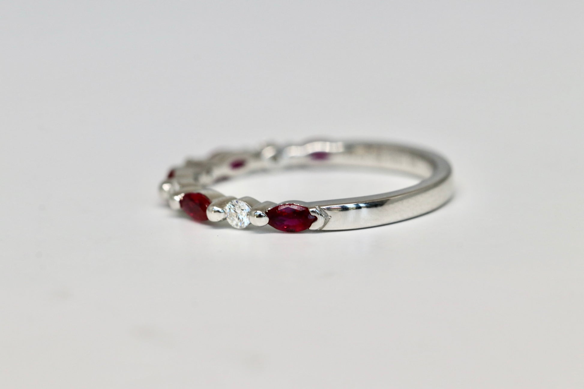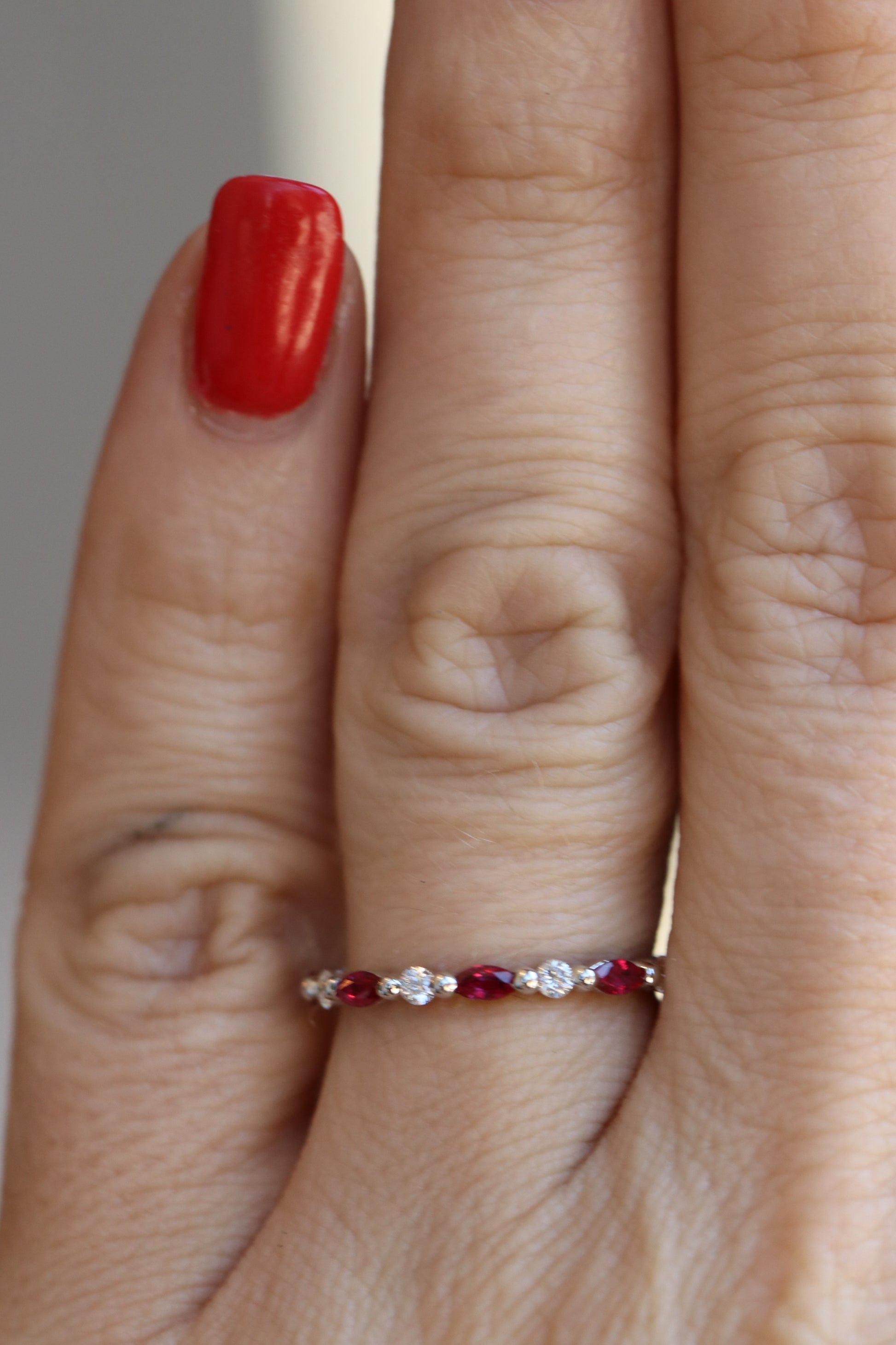 Alternating Marquise Cut Ruby and Round Diamond Stackable Ring