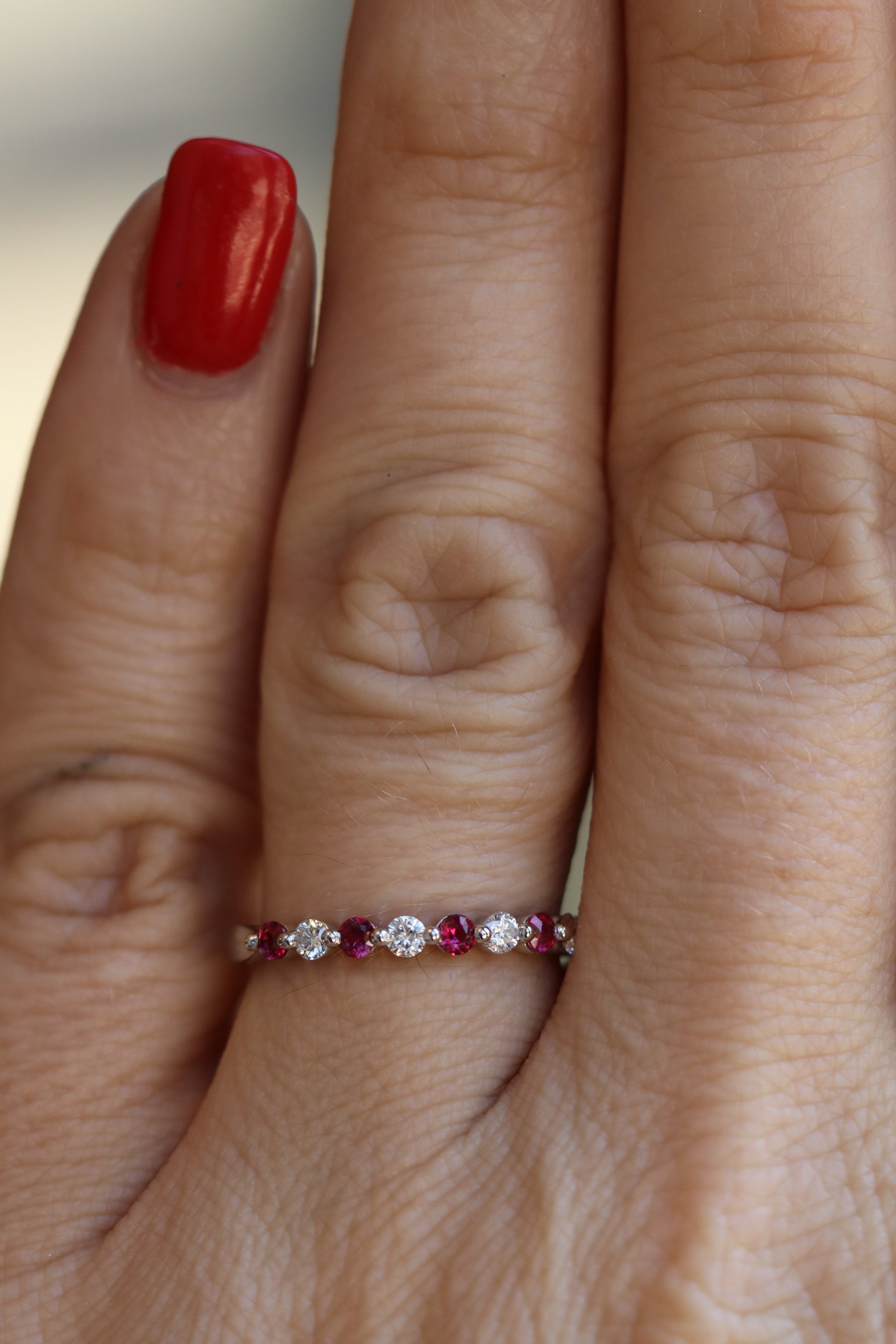 Alternating Round Ruby And Diamond Stackable Ring
