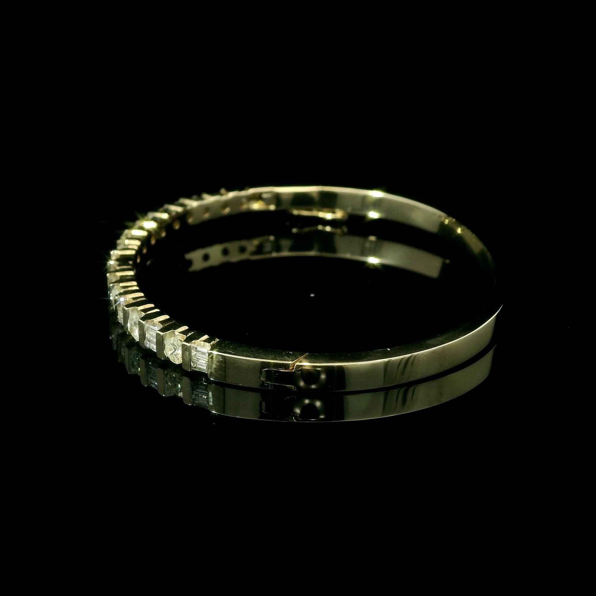 Solid 14K Yellow Gold Diamond Bangle – Bar Set with Round & Baguette Diamonds
