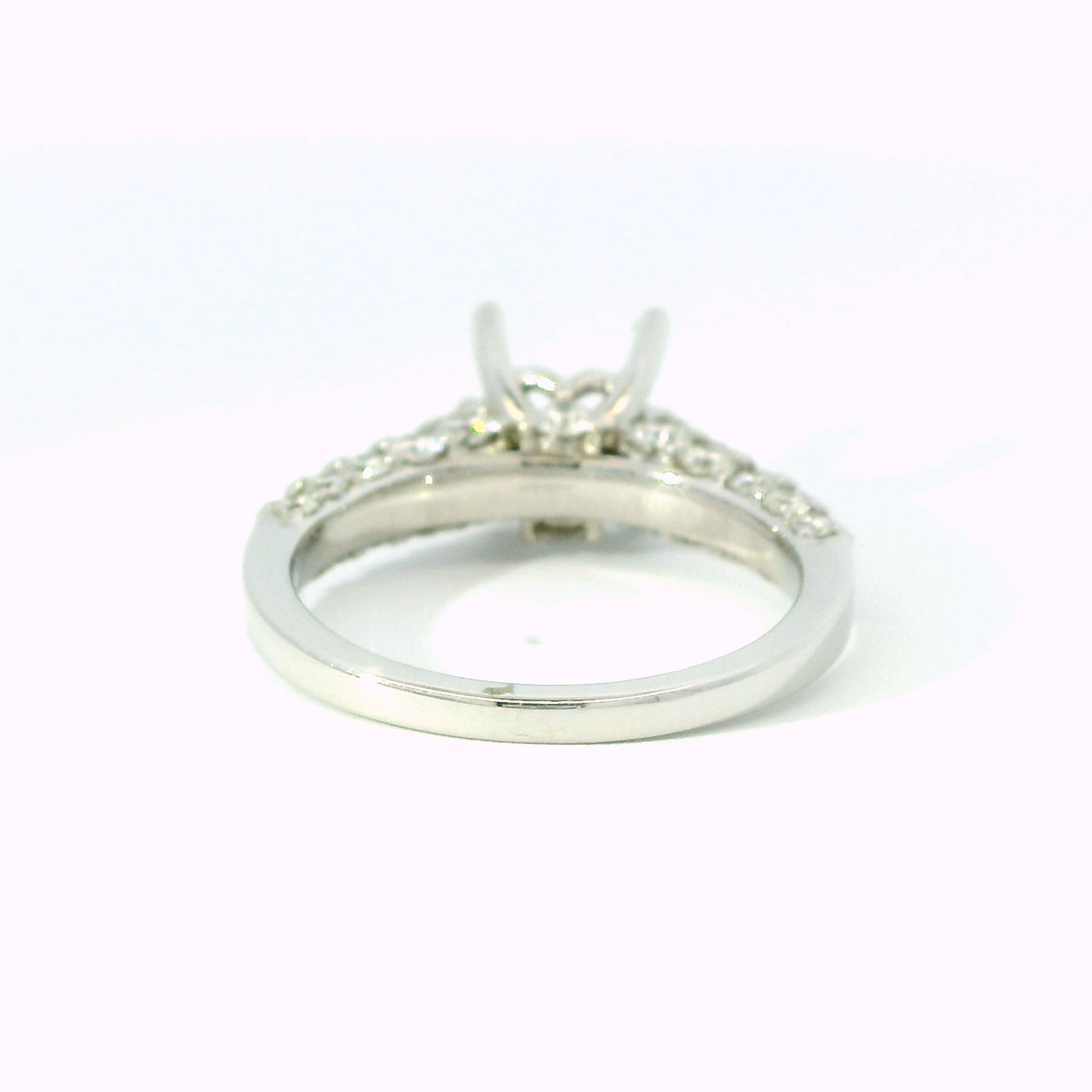This diamond engagement ring setting has diamons on ALL sides for unforgettable sparkle.