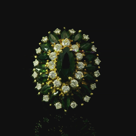 Cindy Royce 18K Gold Diamond & Green Tourmaline Statement Ring – Vintage Designer Cocktail Ring