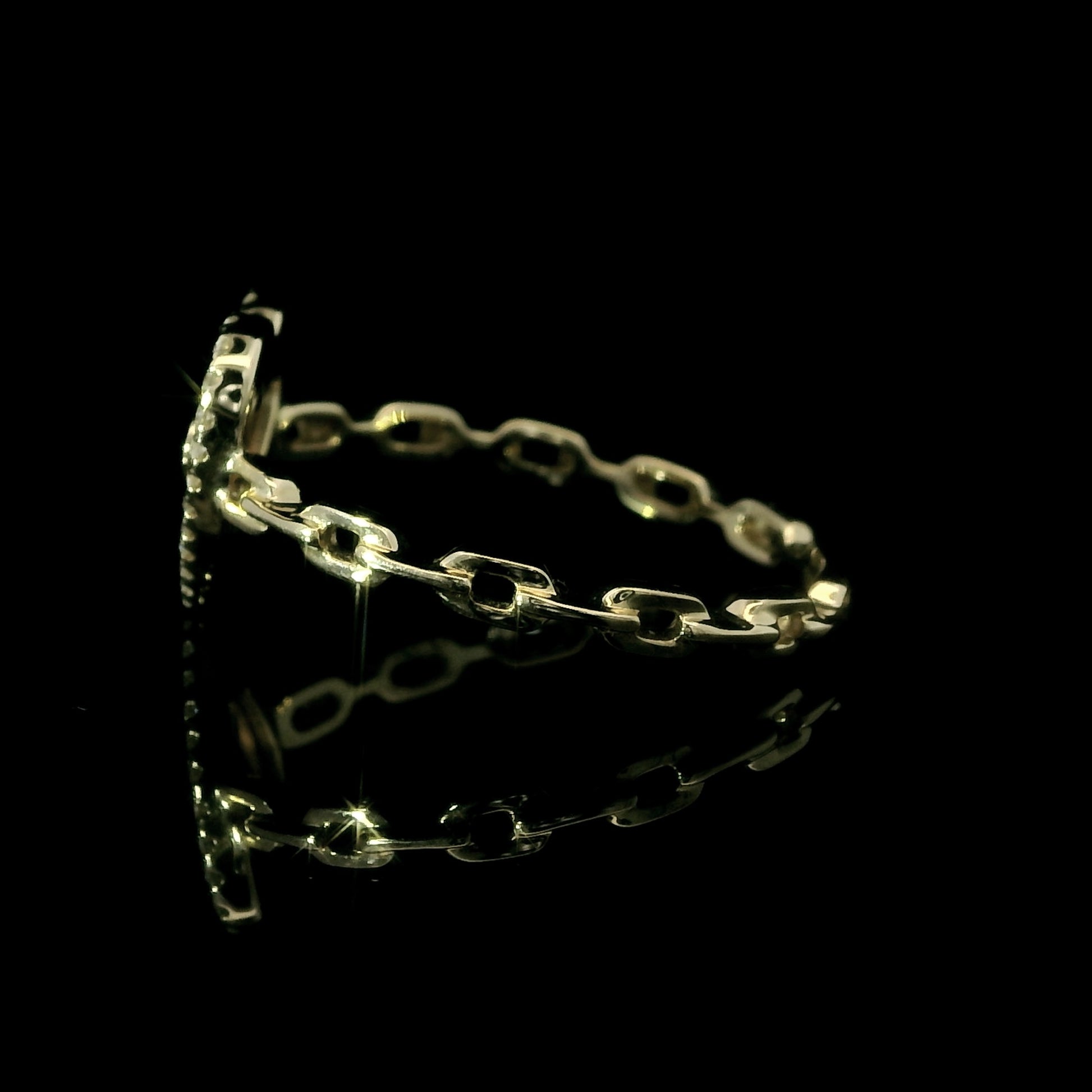 14K Yellow Gold Diamond Heart Cable Link Ring