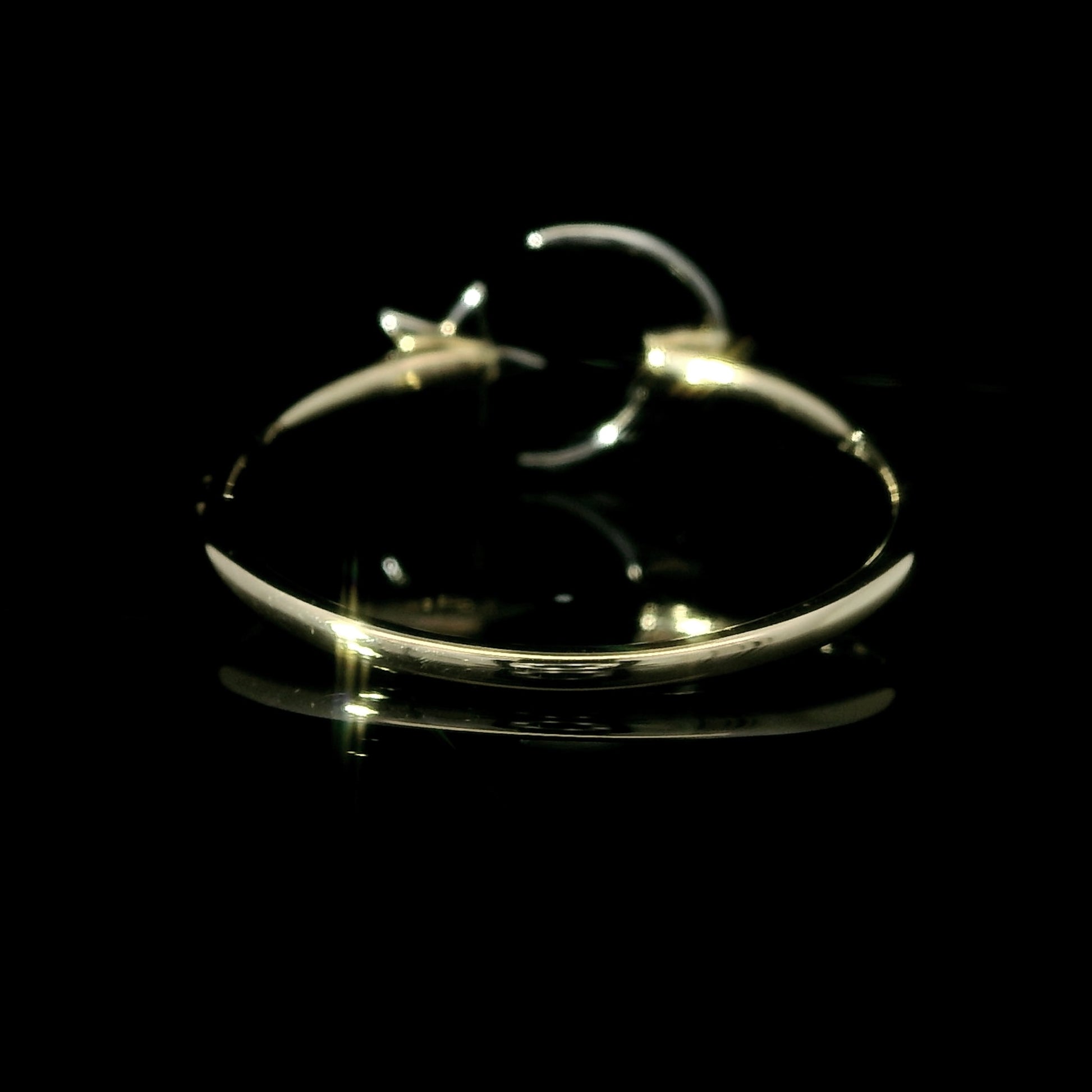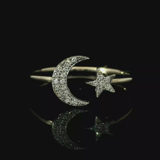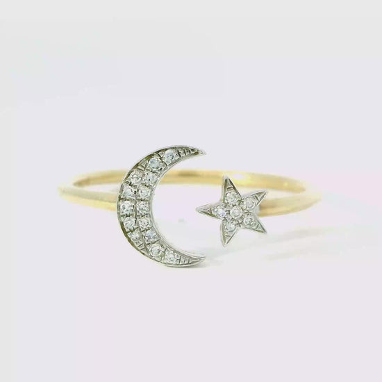 14K Two-Tone Gold Diamond Moon and Star Ring