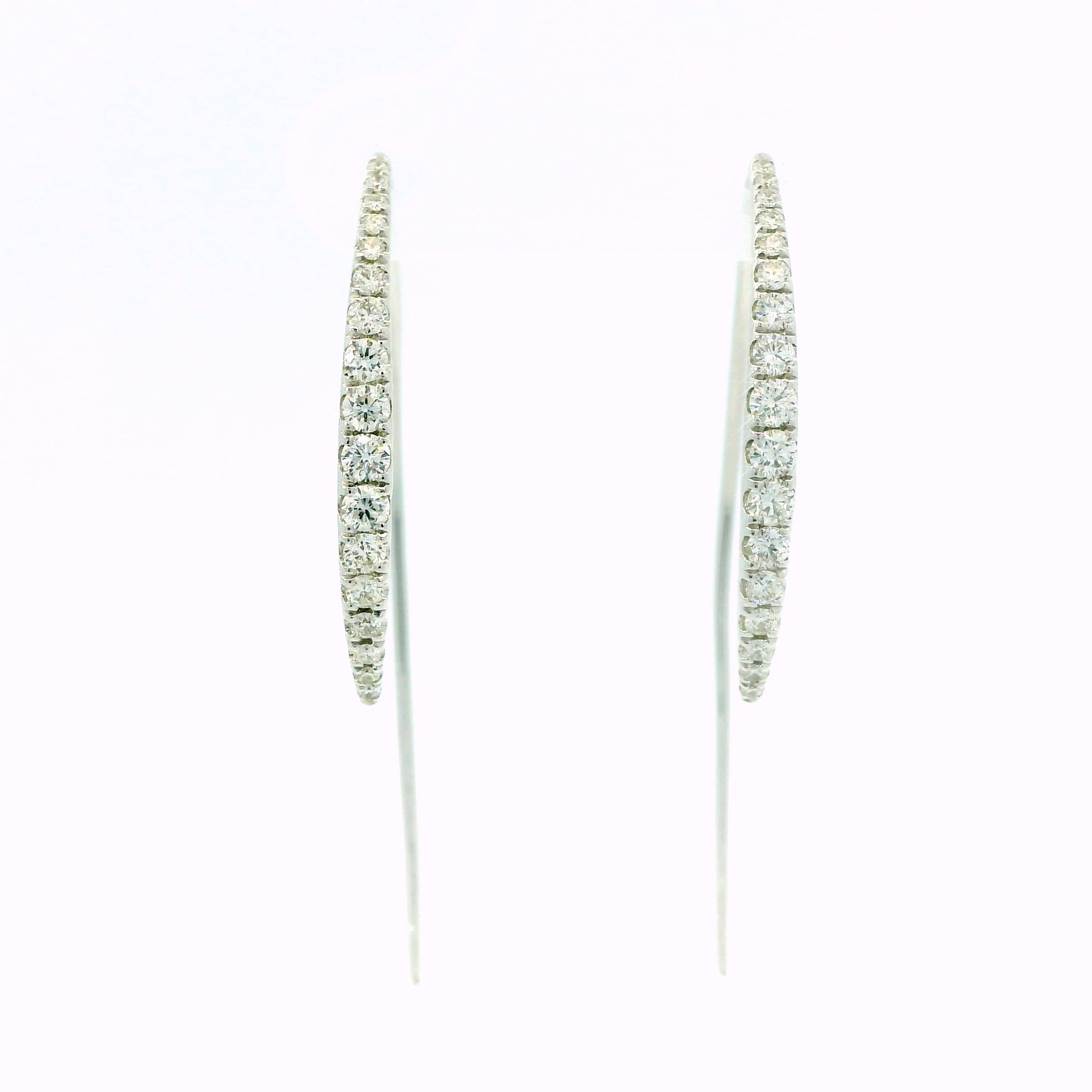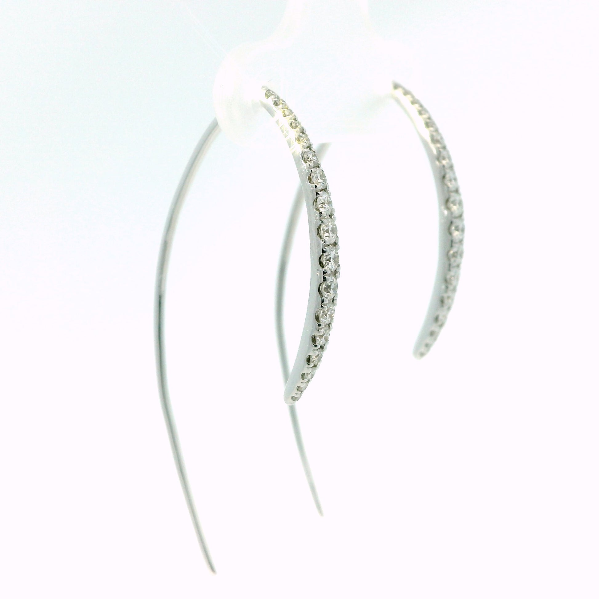 1 graduated row of natural round diamonds shimmer along the front curve, cascading into a slender polished drop that threads elegantly through the ear. Lightweight, eye-catching, and beautifully fluid in movement, they elevate any look — from everyday luxury to evening glamour.