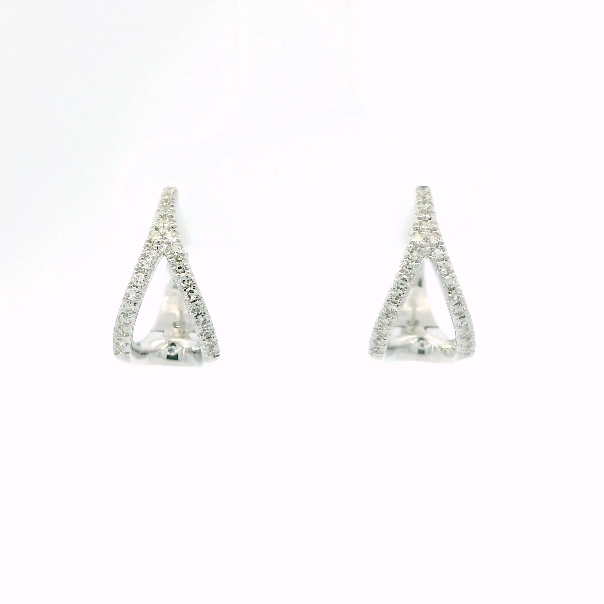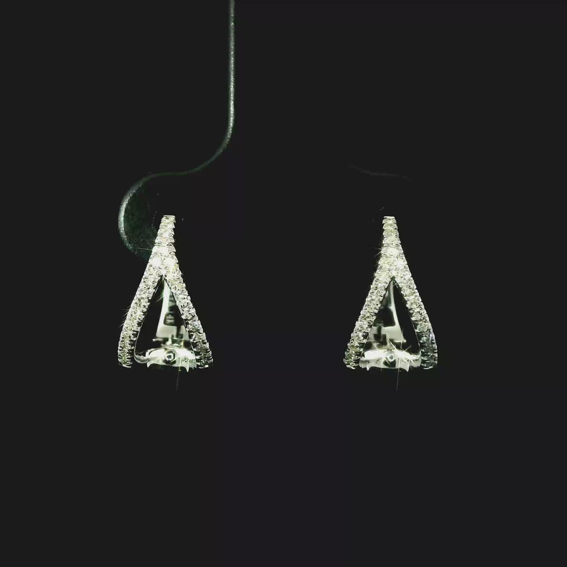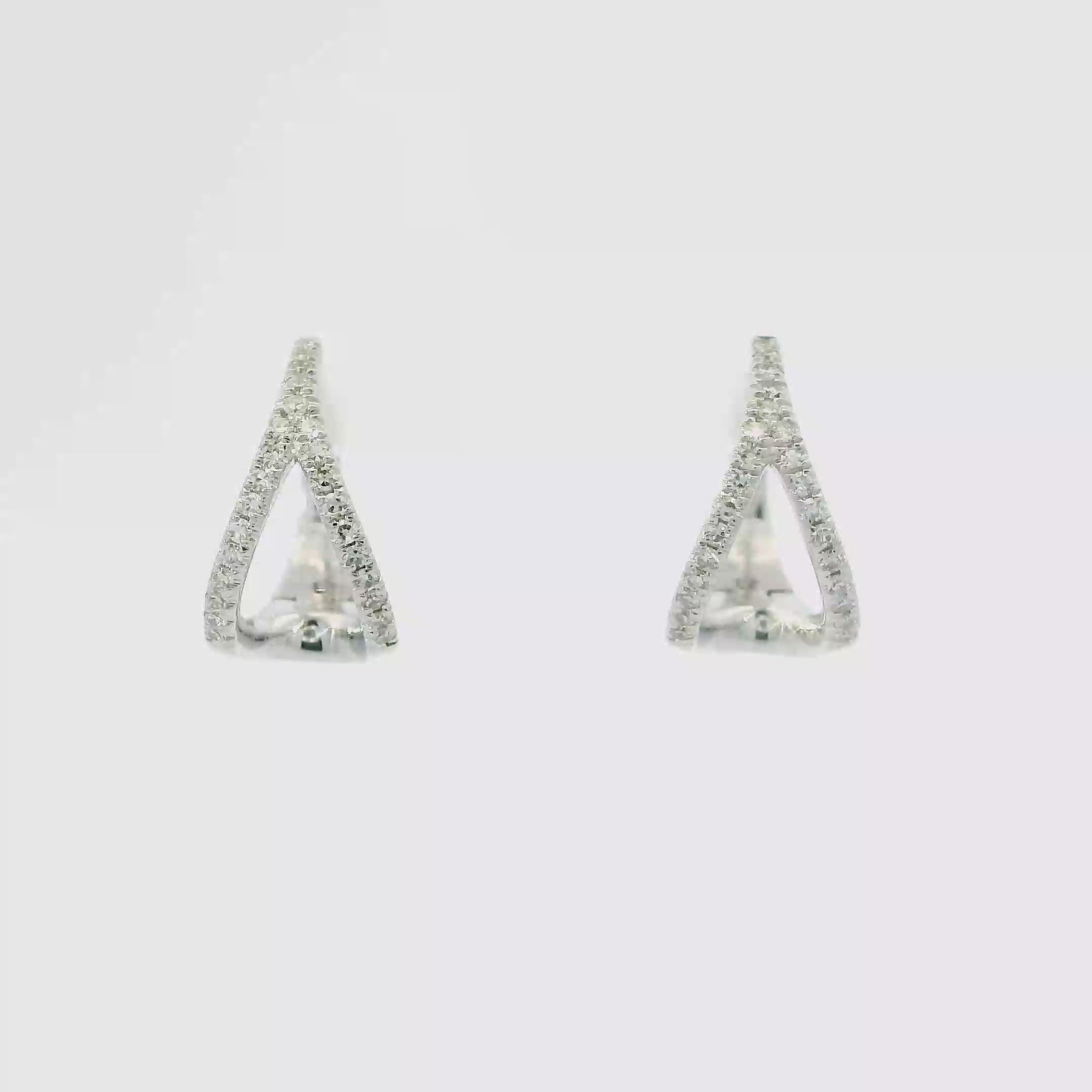 Modern elegance meets timeless sparkle in these Diamond V Hoop Earrings, handcrafted in solid 14K white gold. Designed with a sleek open “V” silhouette, each hoop is lined with hand-set pavé natural diamonds that shimmer from every angle.