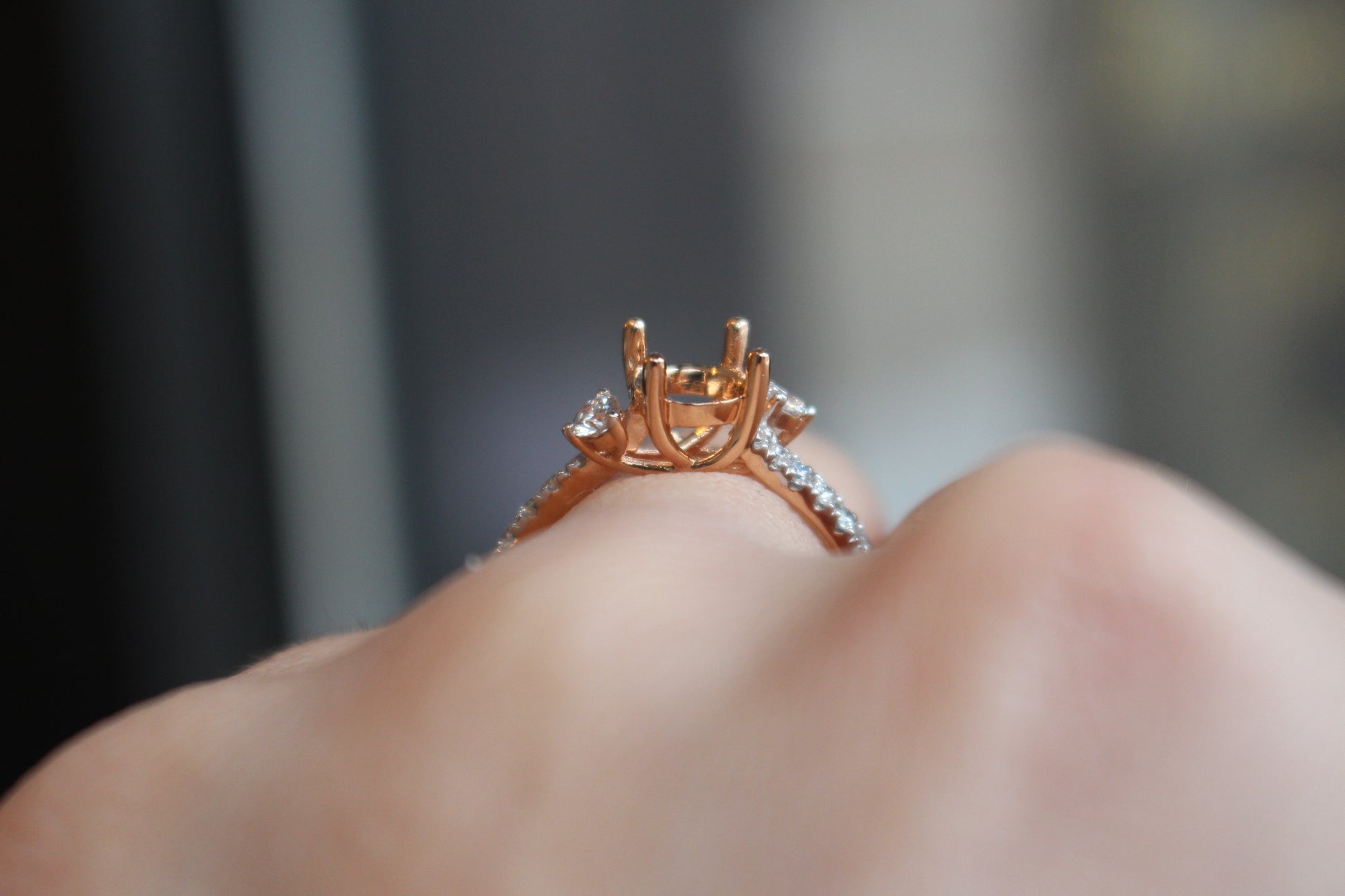 Currently, this setting is available for next day delivery in rose gold but if you would like it in another metal, please call/text us at (630)355-7464 for the availability time frame.