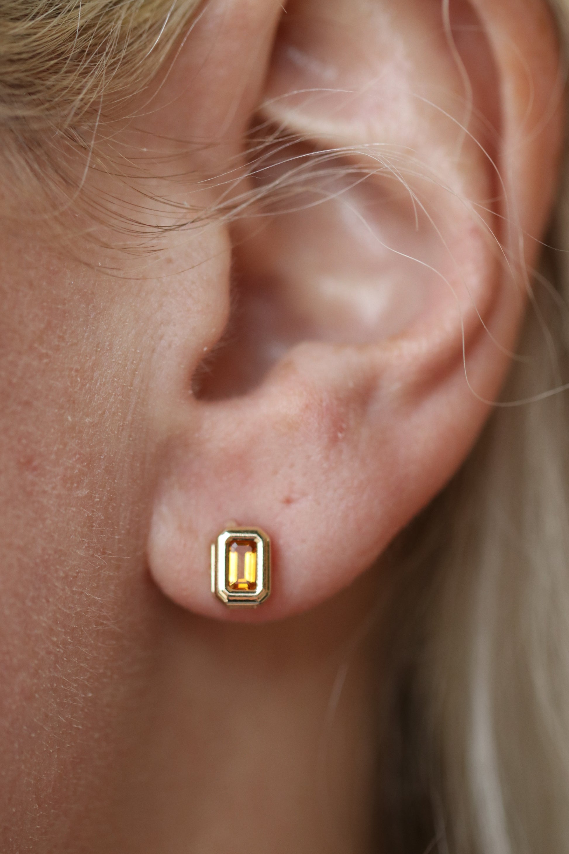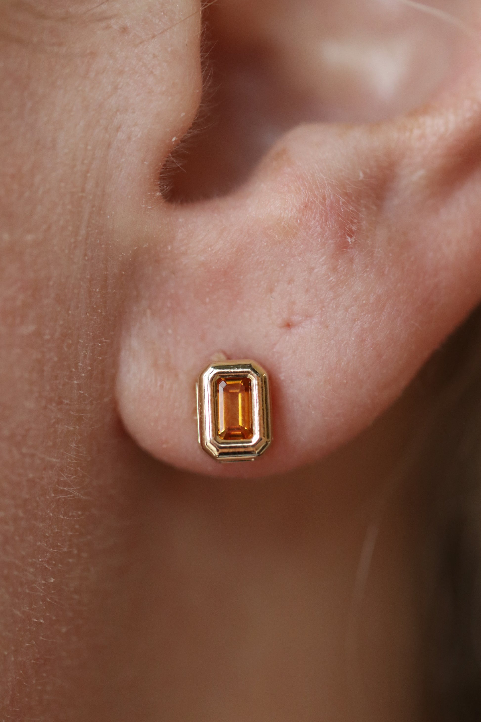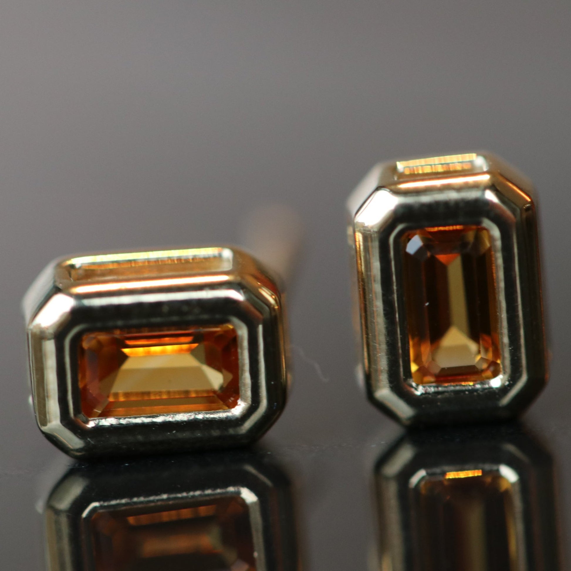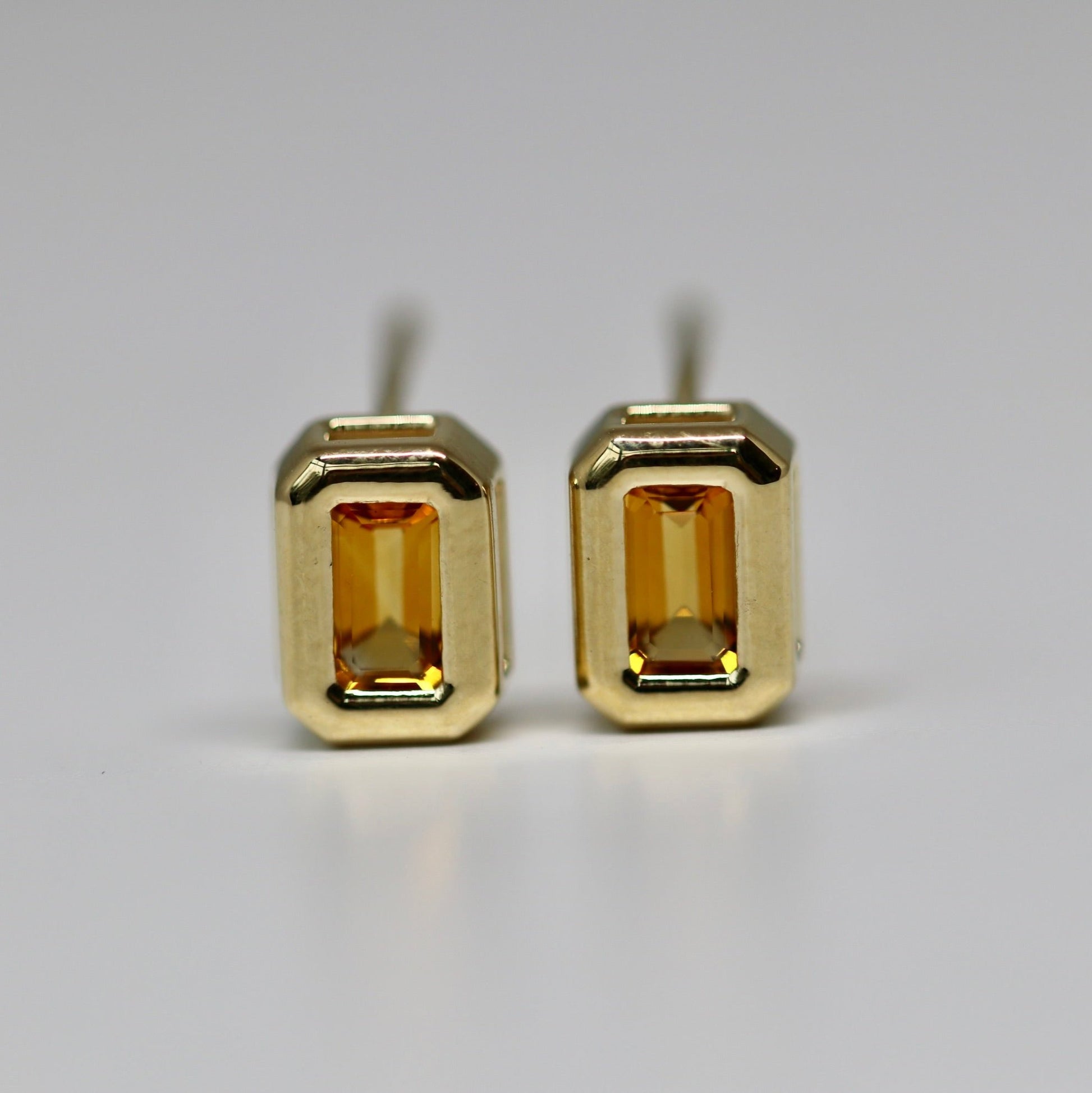 Emerald Cut Citrine Bezel Set Studs in 14K Gold