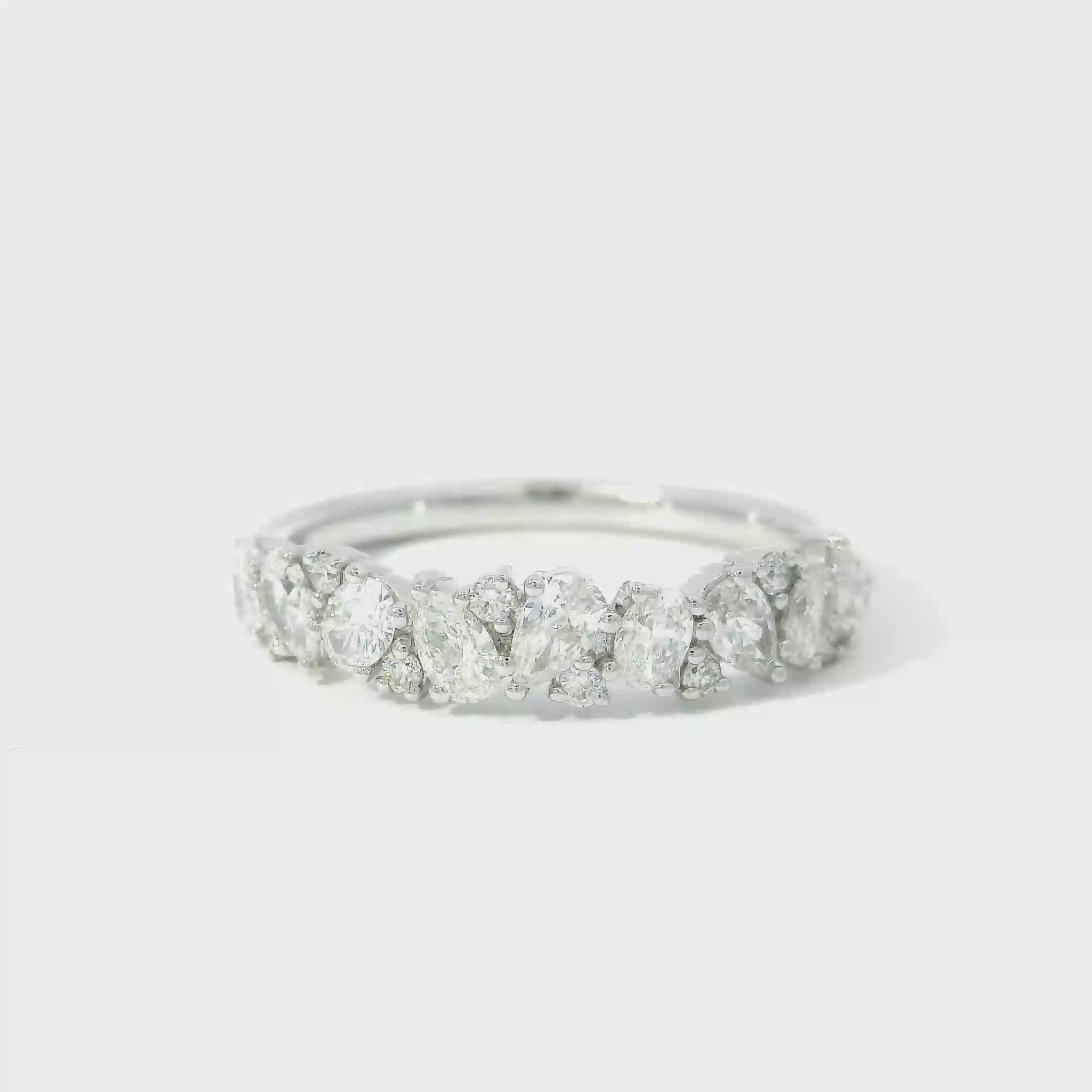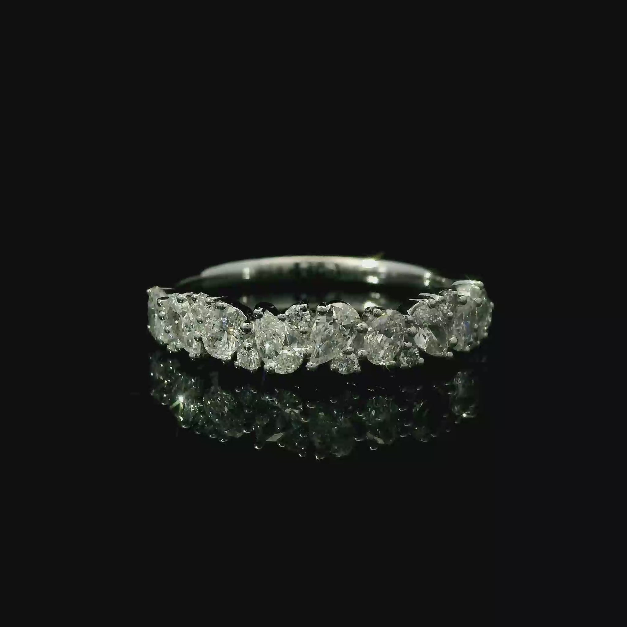 A masterpiece of brilliance and design, this Mixed Shape Diamond Band features a stunning arrangement of natural marquise, pear, and round brilliant diamonds, each hand-set to create a seamless flow of light and sparkle. Crafted in solid 14K white gold, the asymmetrical pattern gives this band a unique, organic elegance that sets it apart from traditional styles.