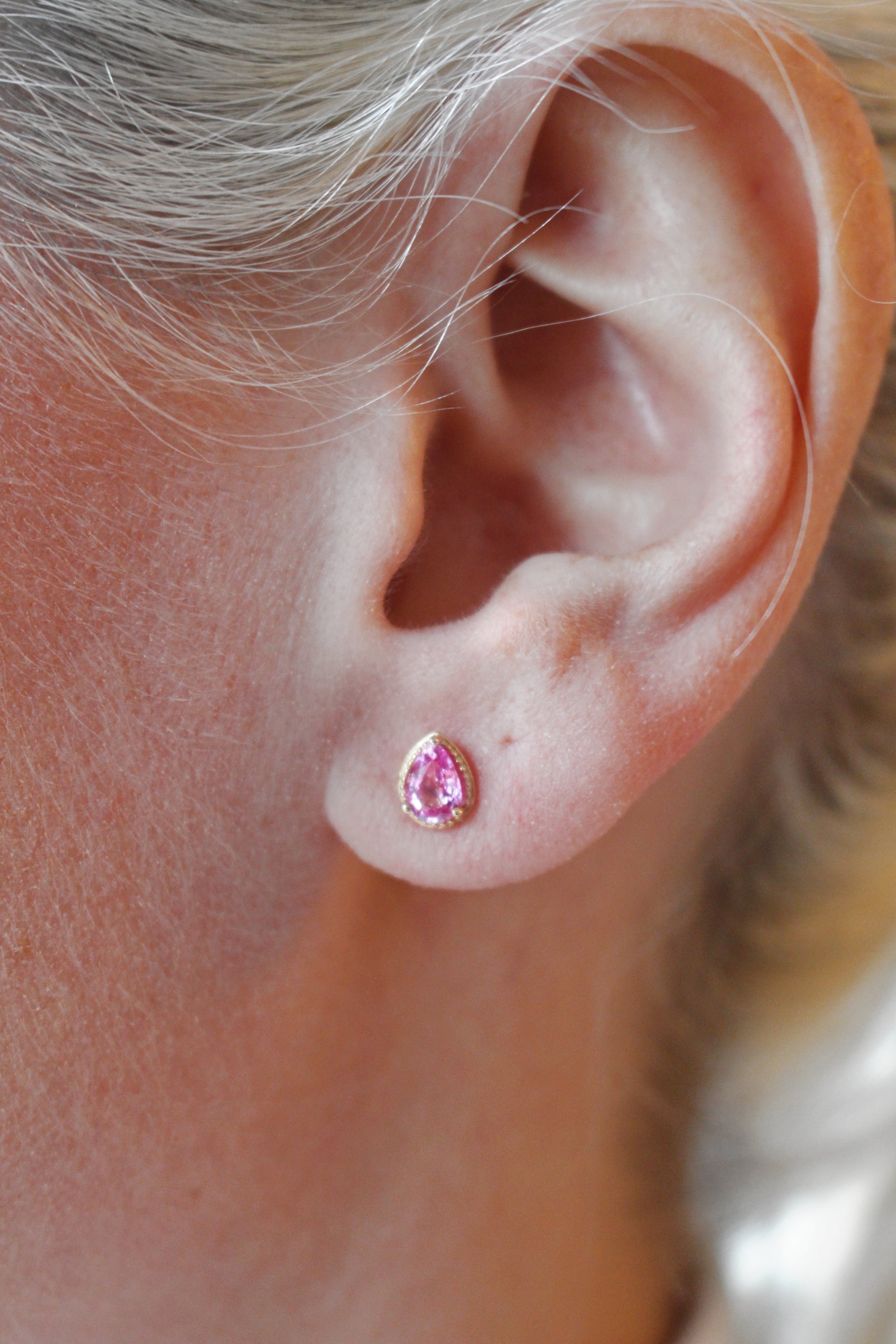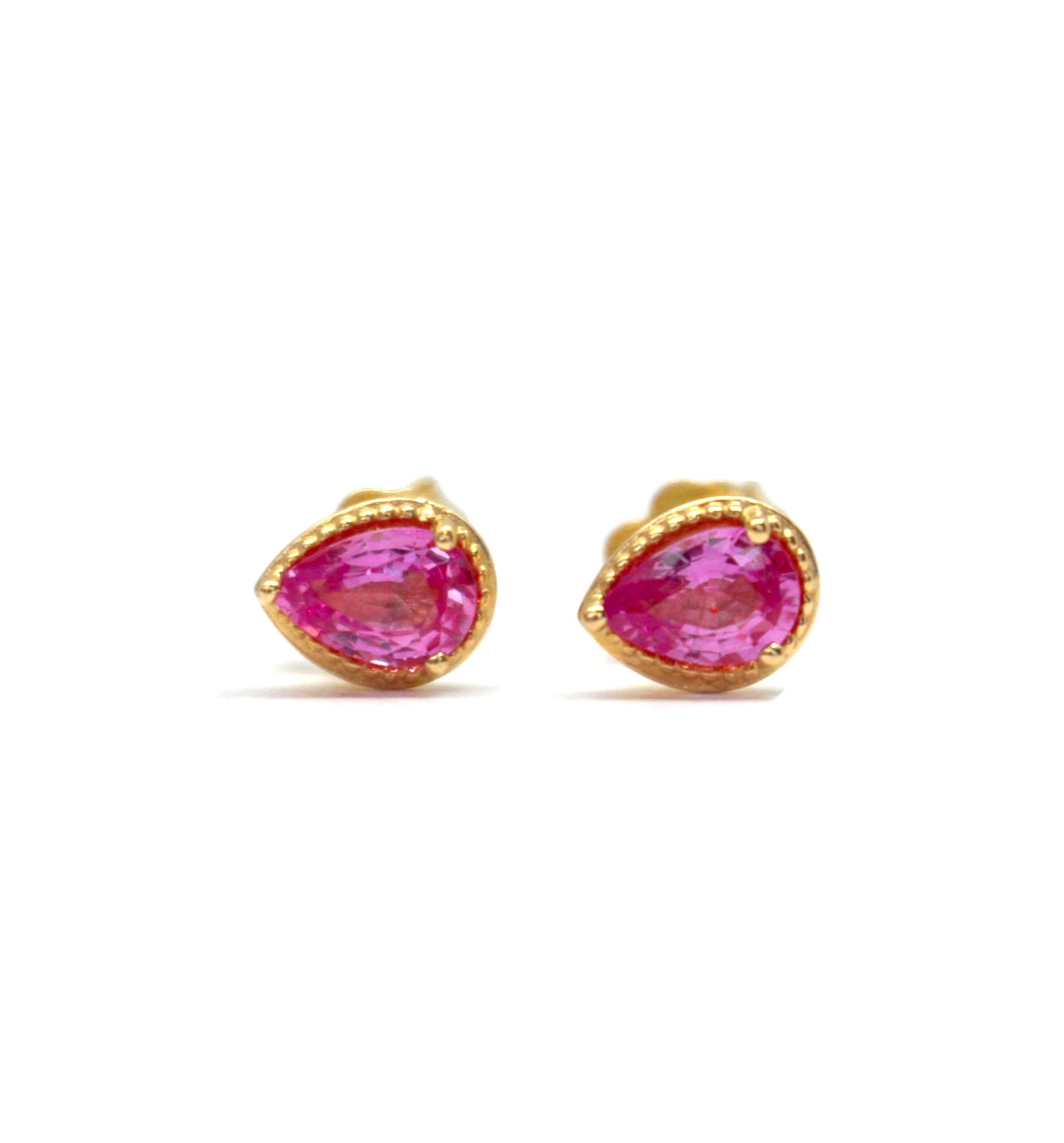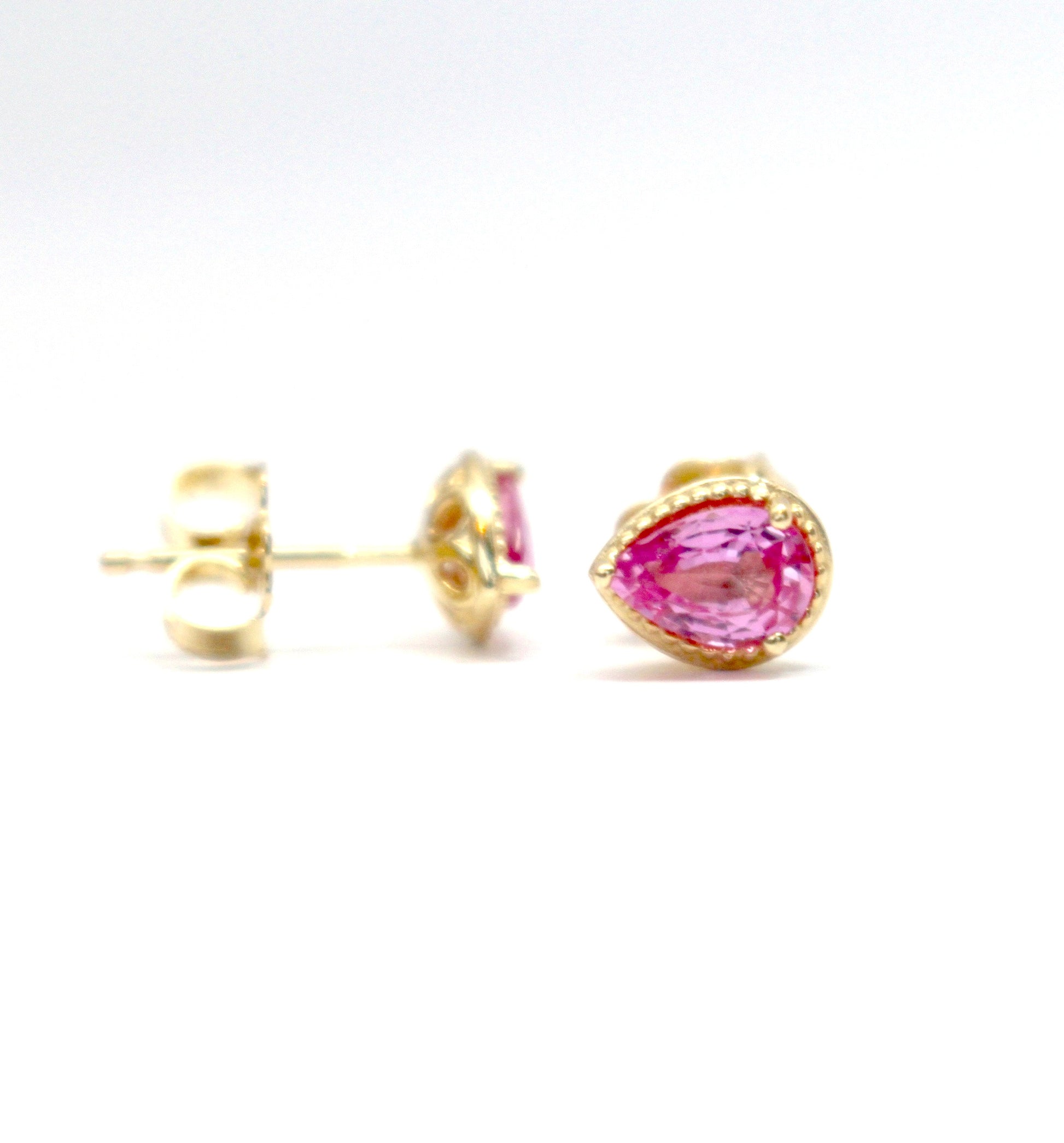 Genuine Pink Sapphire Pear Cut Earrings in 14kt Gold