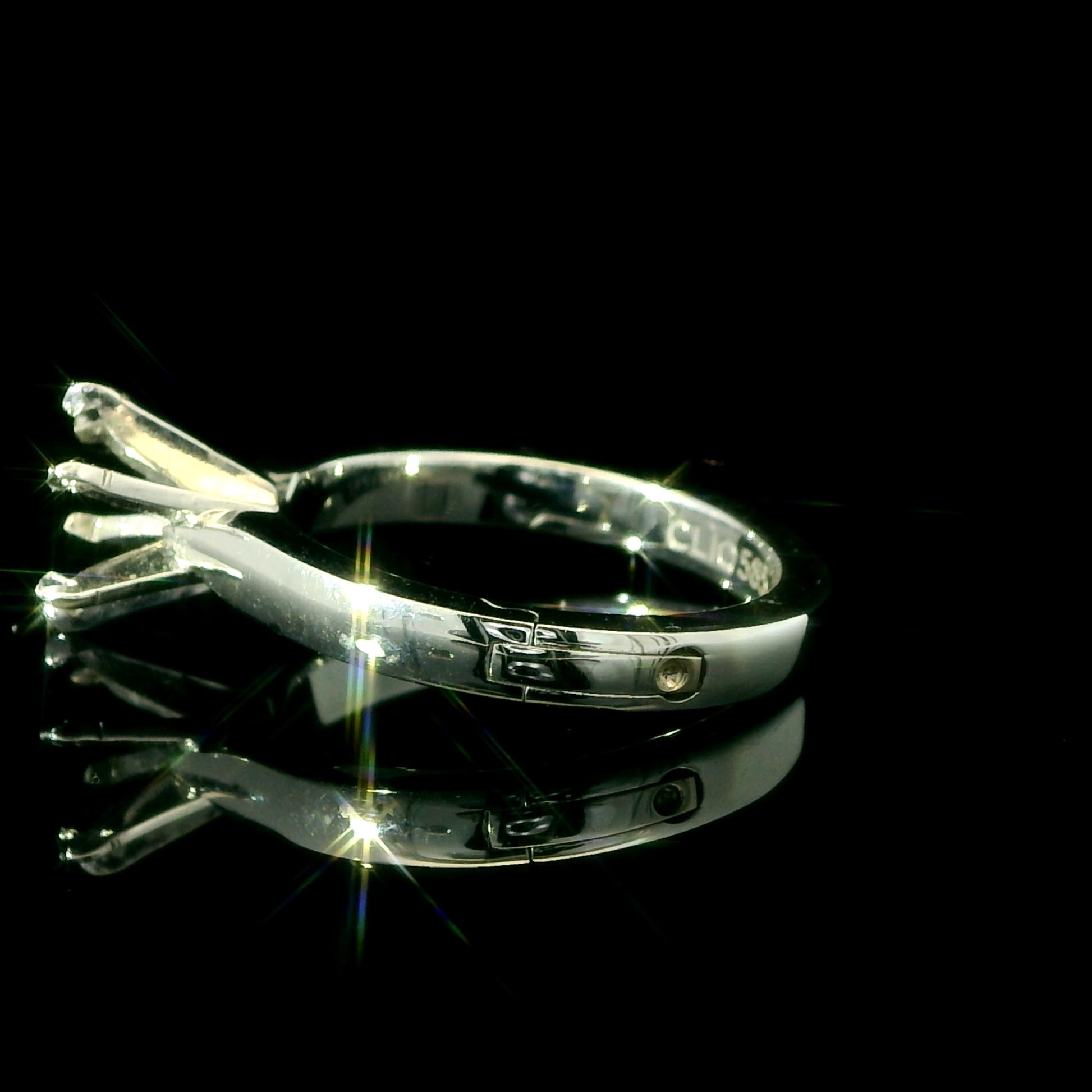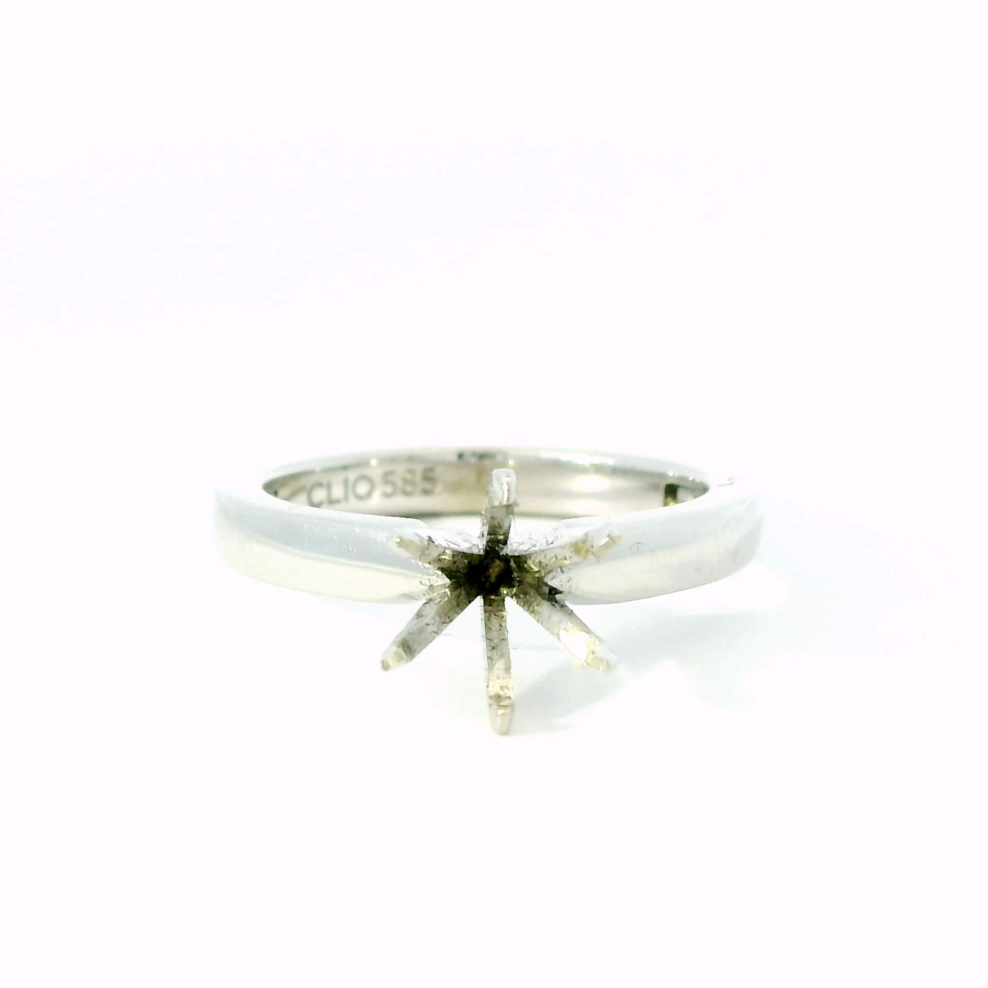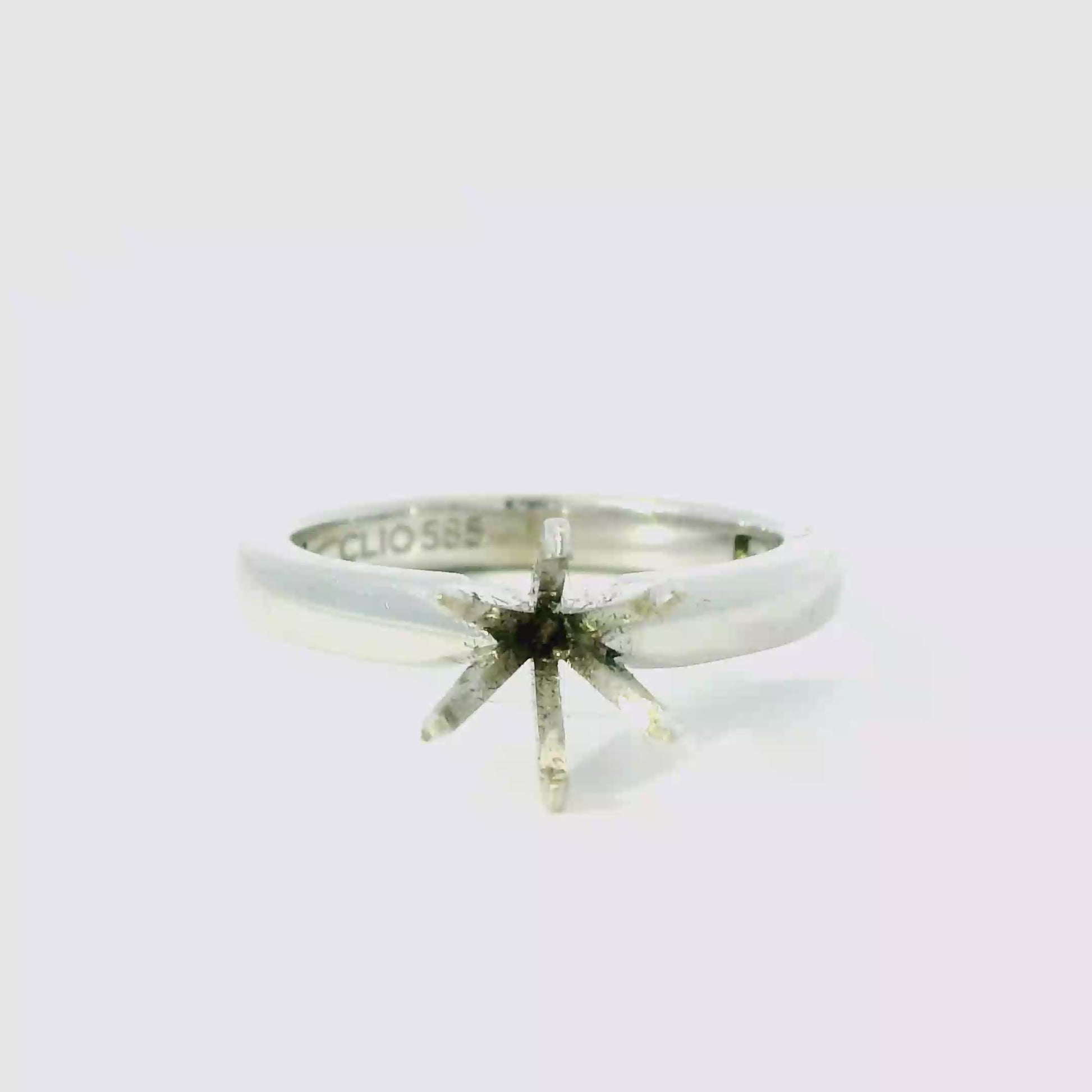 A timeless choice for the center stone that means everything. This elegant six-prong solitaire engagement ring setting is crafted in 14K white gold, offering a refined, enduring foundation for your diamond.