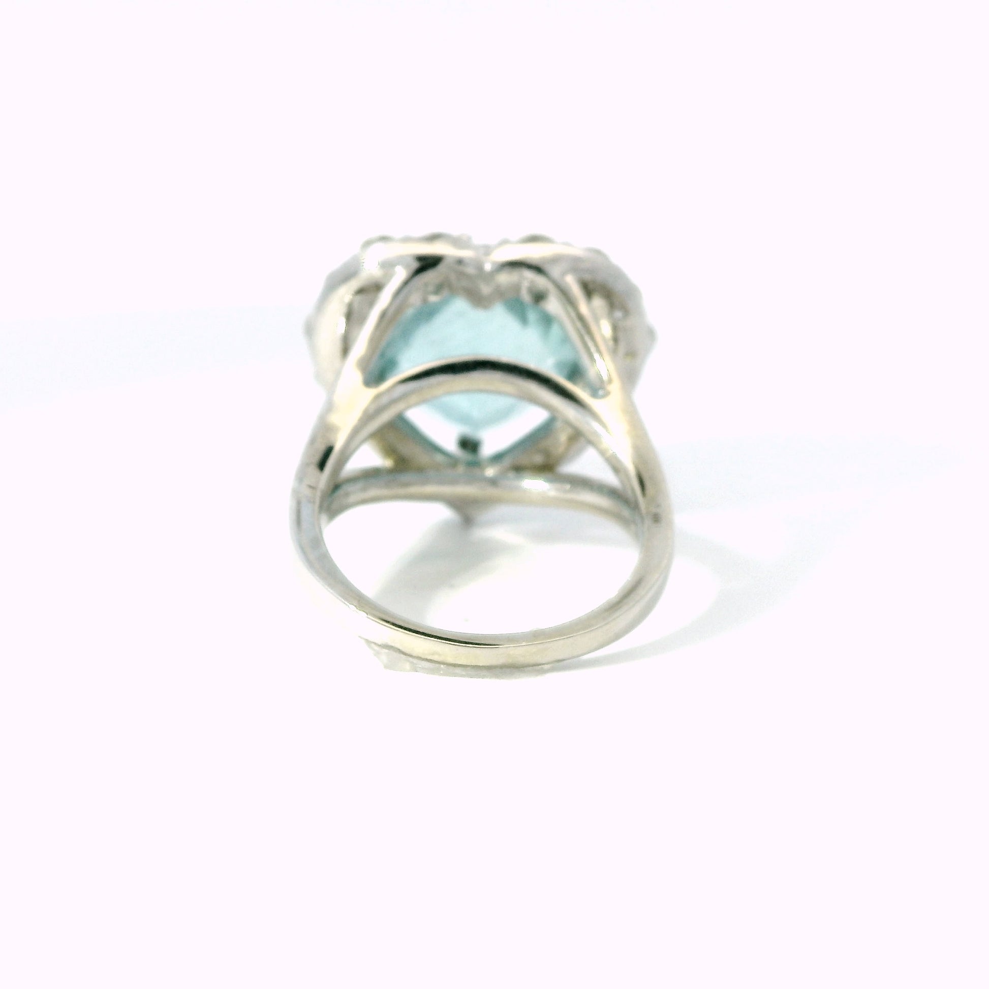 Vintage Blue Topaz Heart Ring Valentine’s Day Gift with Diamond Halo