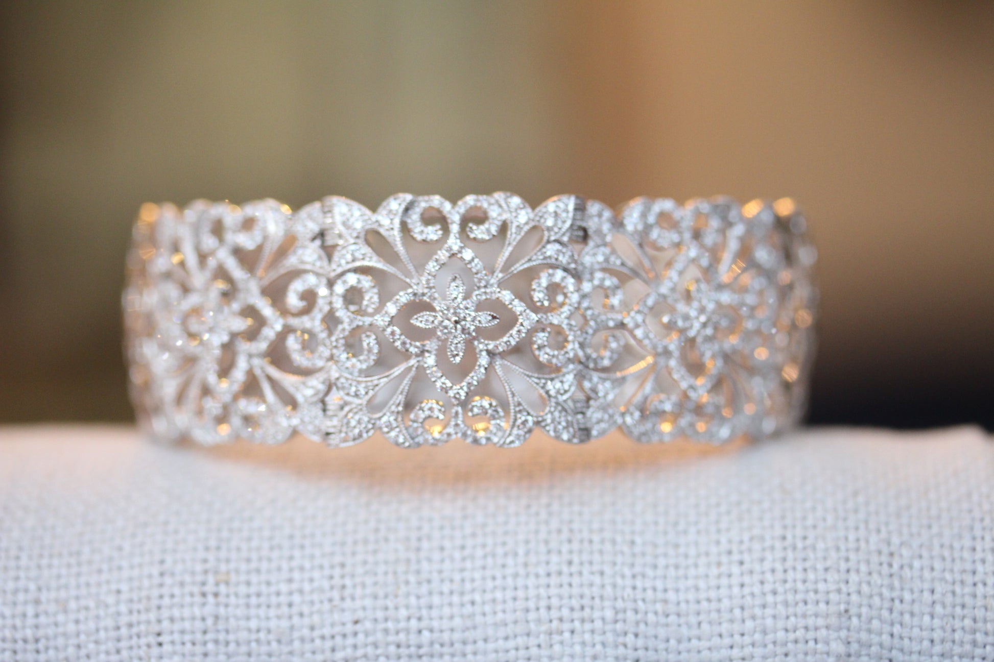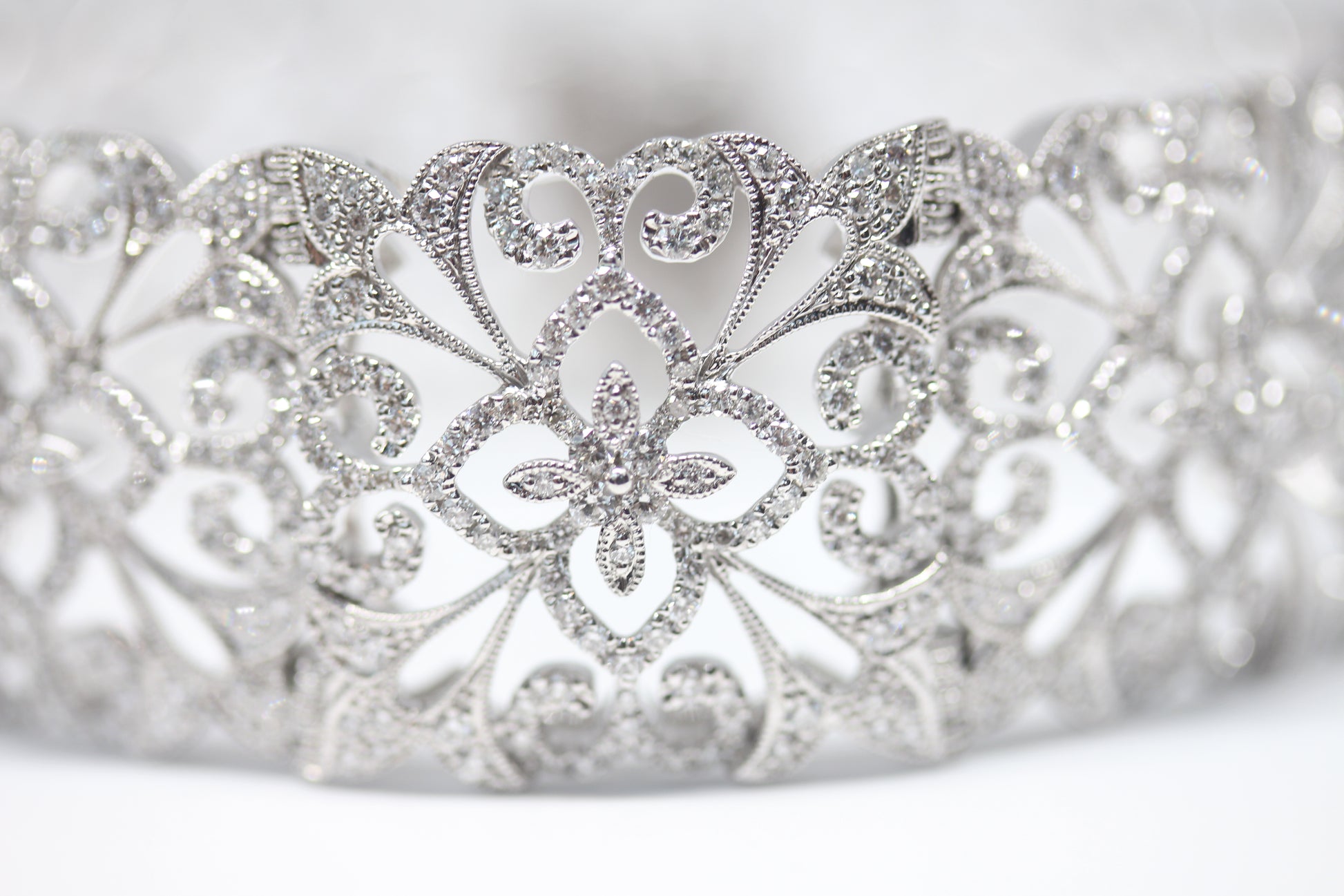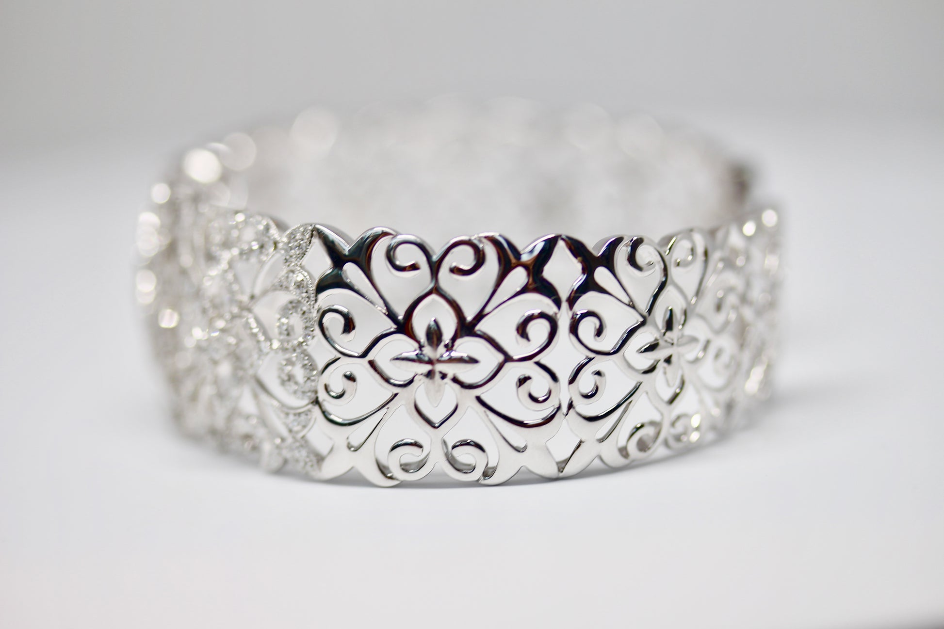 Wide Vintage Inspired Diamond Bangle in 14kt White Gold